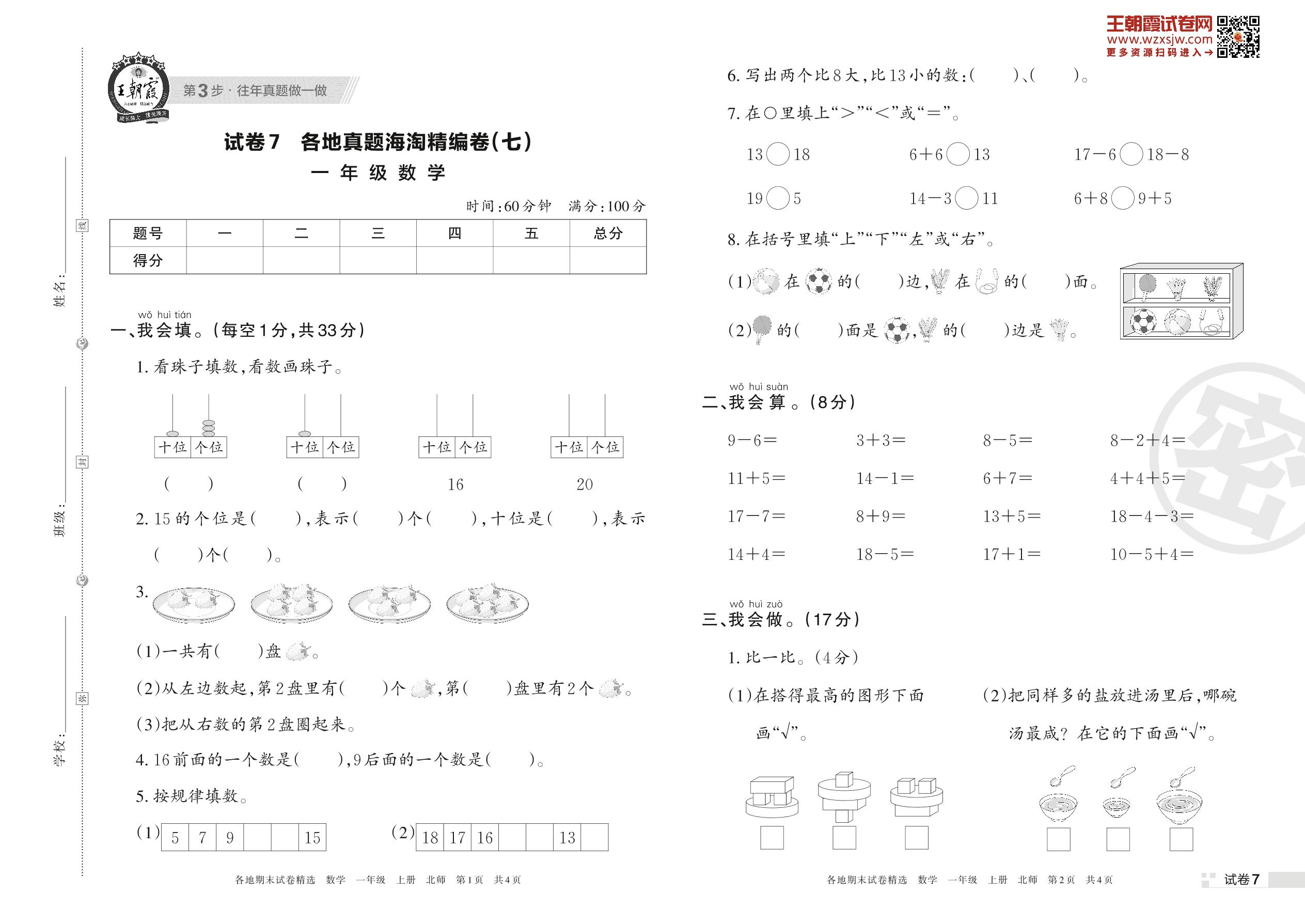 各地真题海淘精编卷(七)一年级上册数学(北师版)【7】