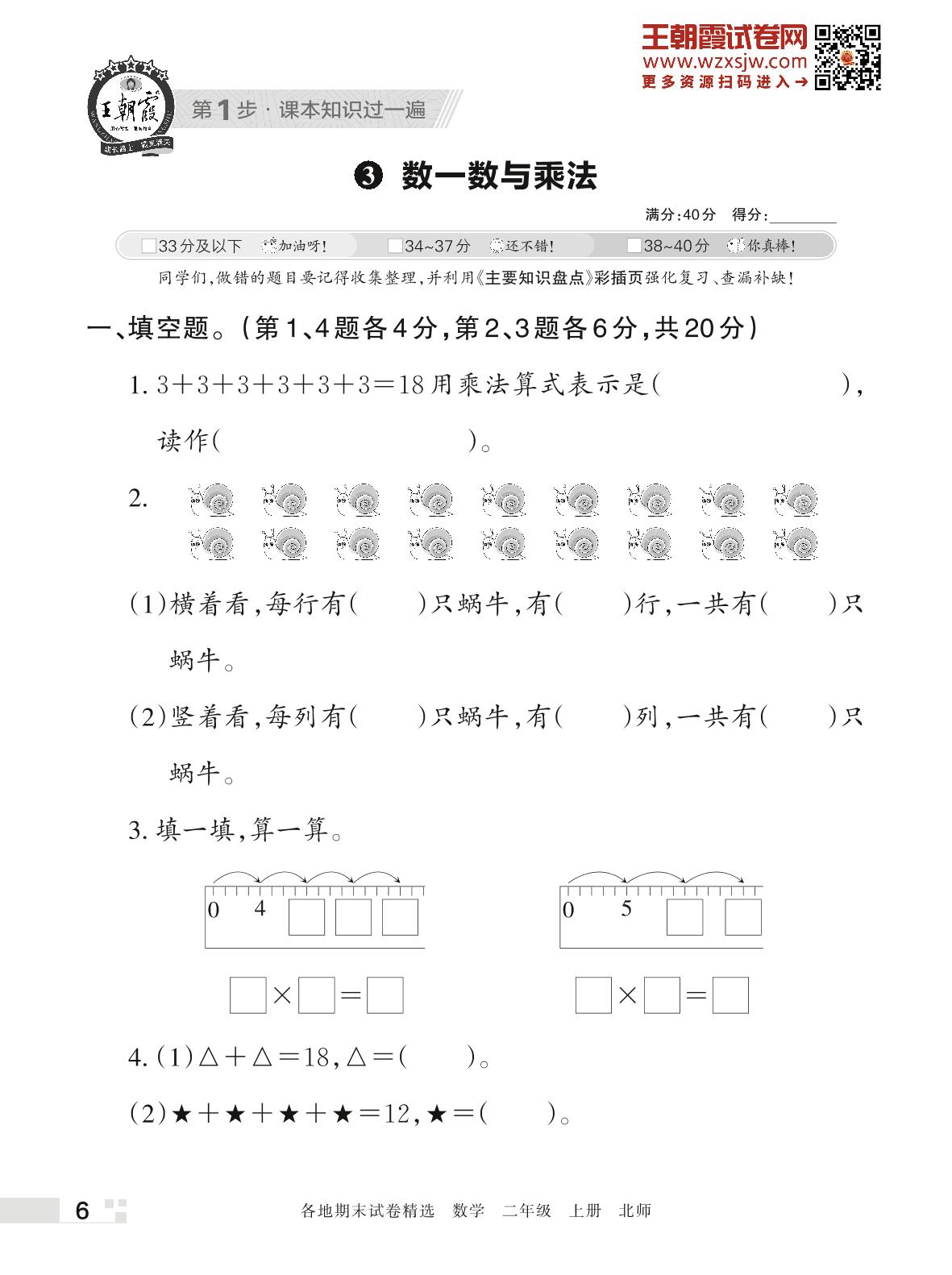 王朝霞期末过课本——3 数一数与乘法二年级上册数学(北师版)