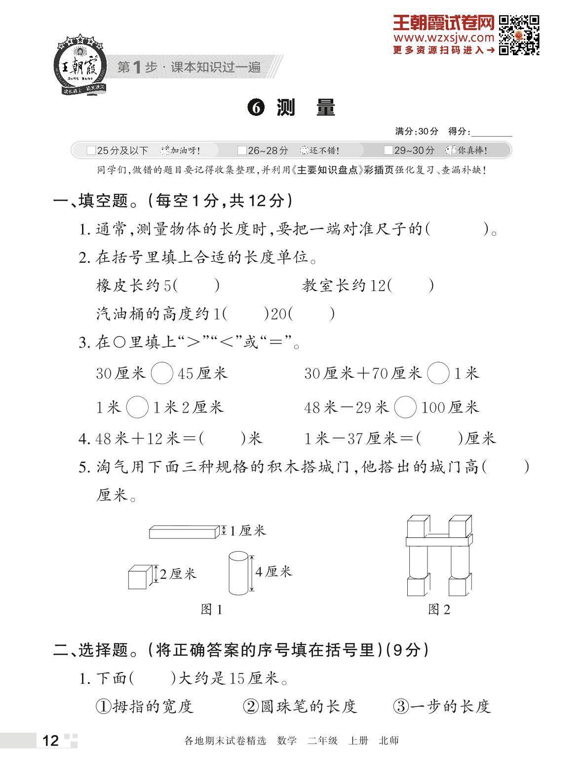 王朝霞期末过课本——6 测量二年级上册数学(北师版)