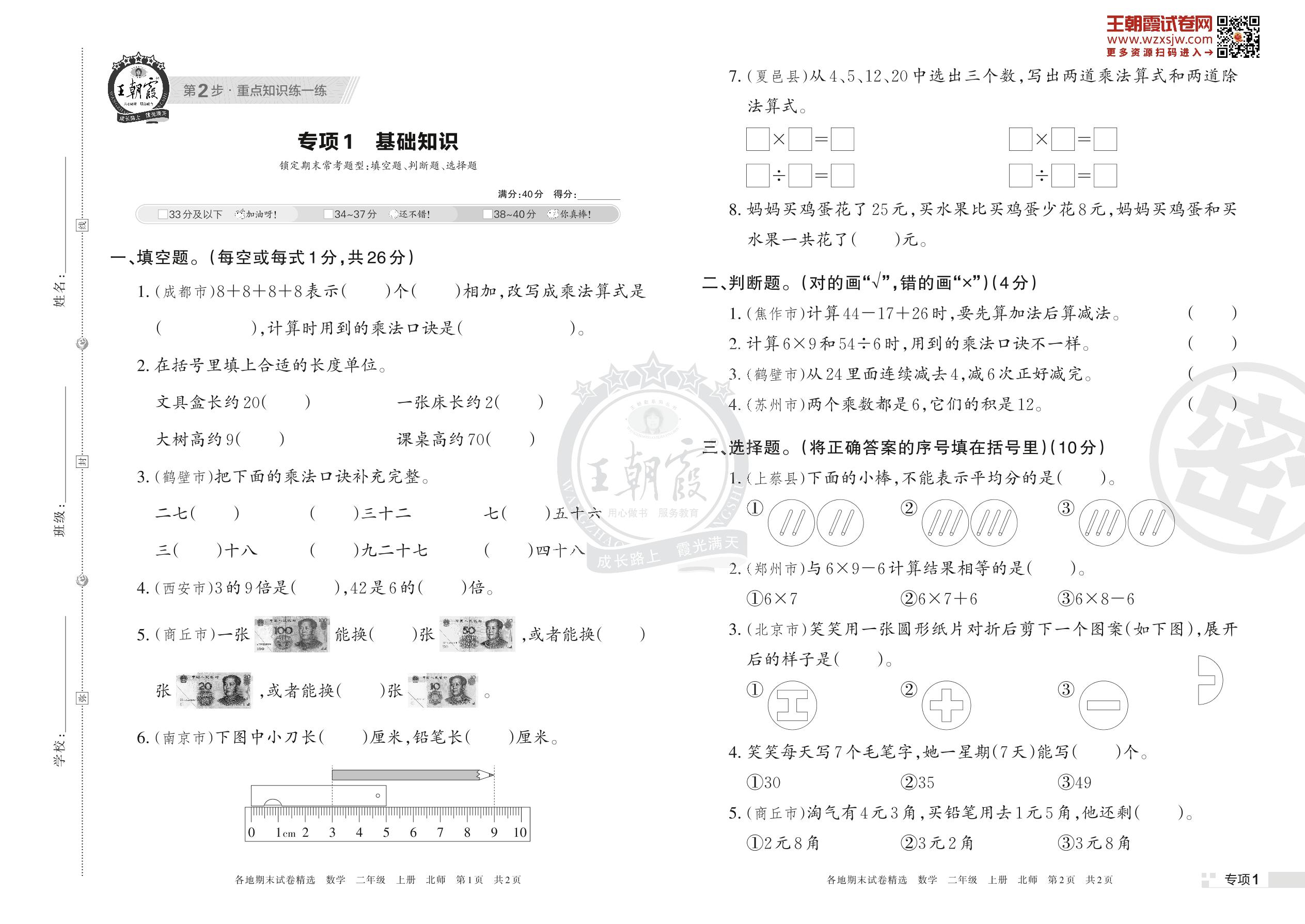 王朝霞期末专项卷——基础知识二年级上册数学(北师版)【1】