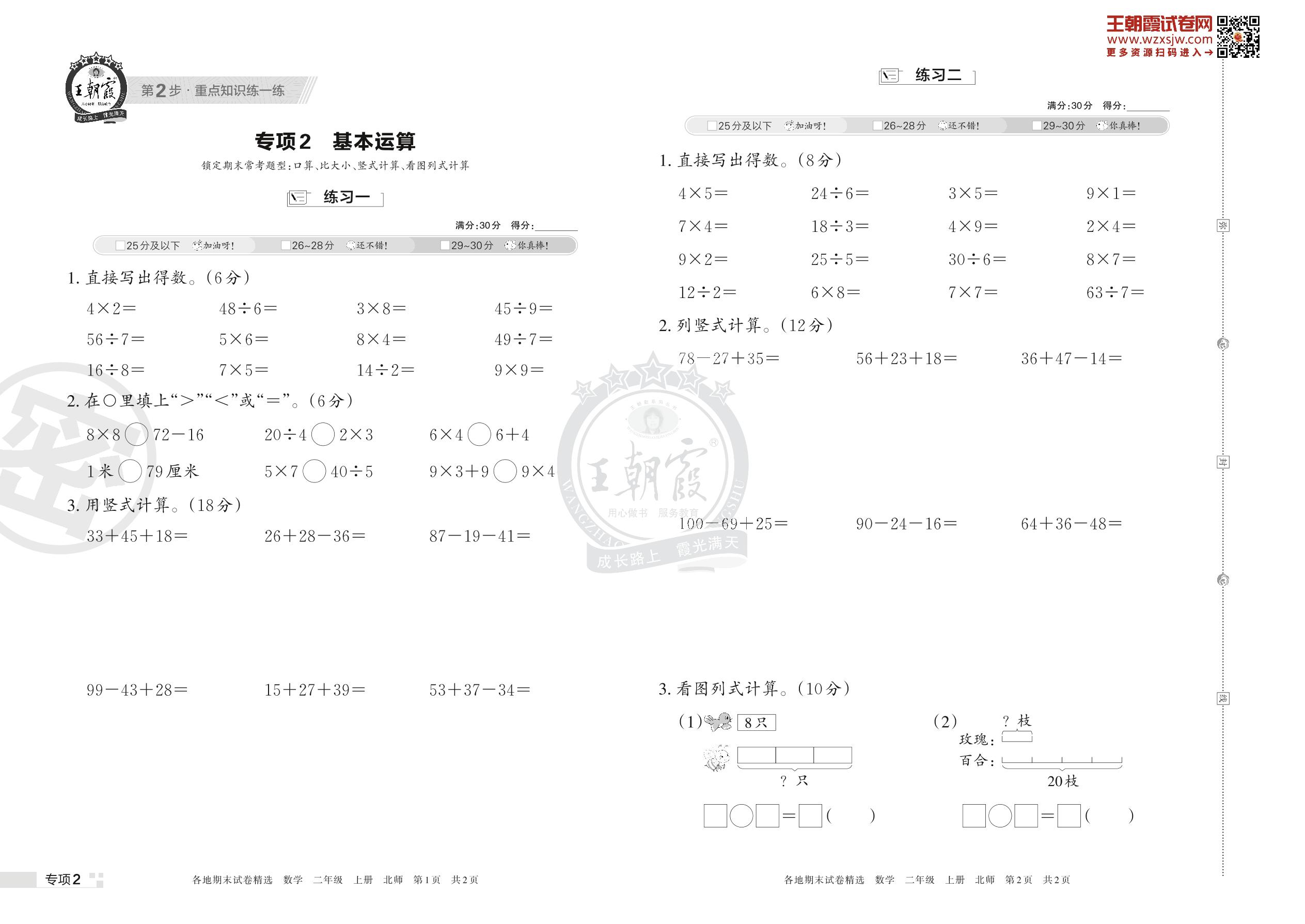 王朝霞期末专项卷——基本运算二年级上册数学(北师版)【2】