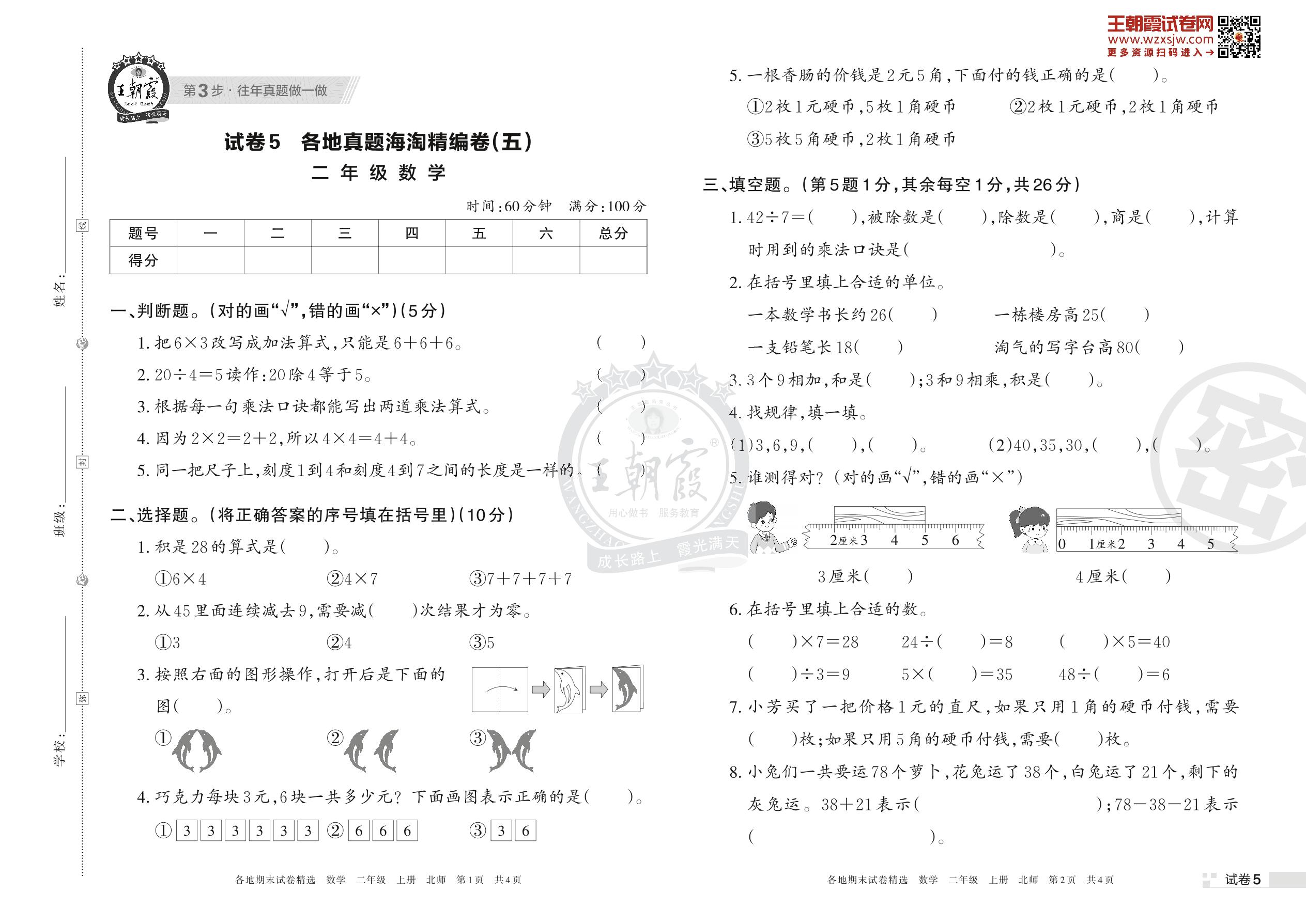 二年级数学北师版上册期末卷