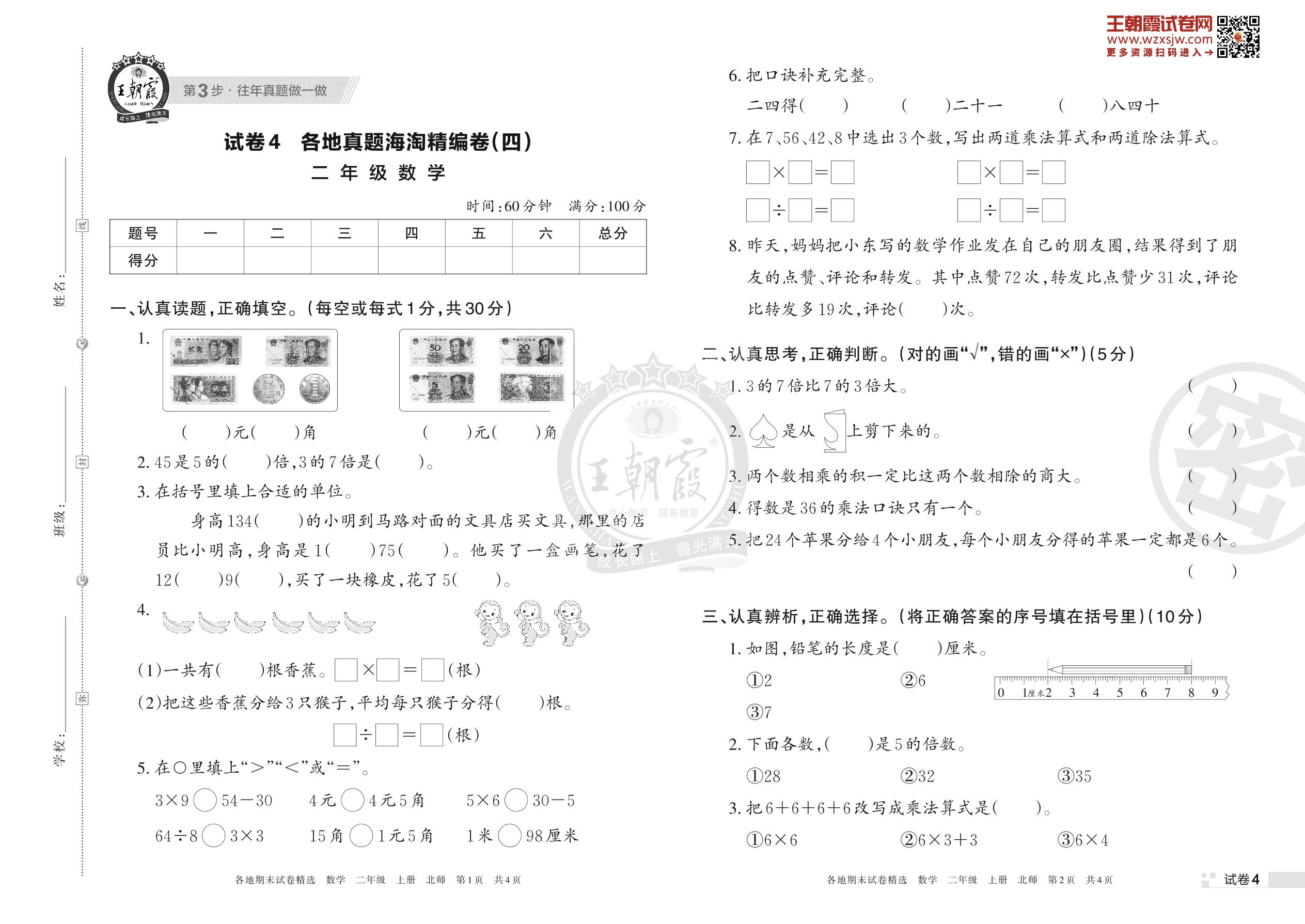 各地真题海淘精编卷(四)二年级上册数学(北师版)【4】