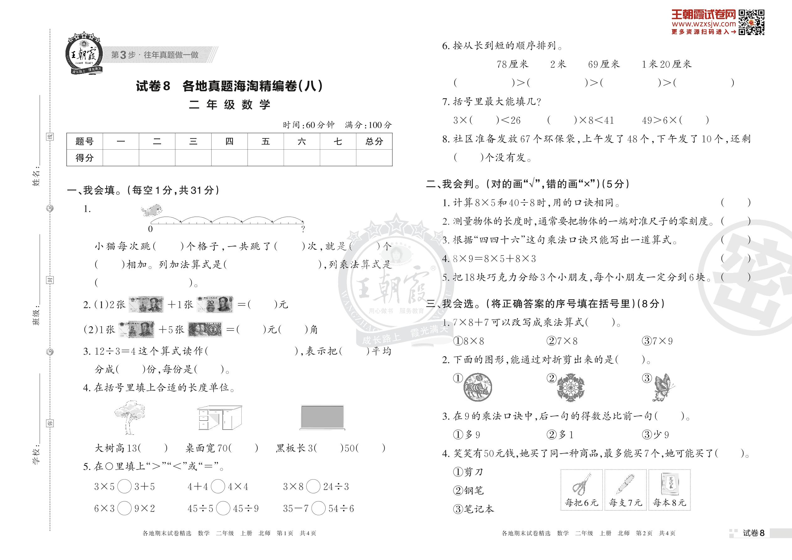 各地真题海淘精编卷(八)二年级上册数学(北师版)【8】