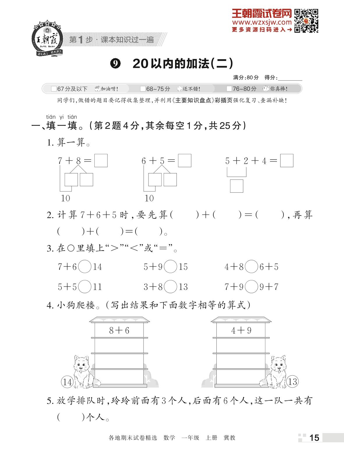 王朝霞期末过课本——9 20以内的加法(二)一年级上册数学(冀教版)
