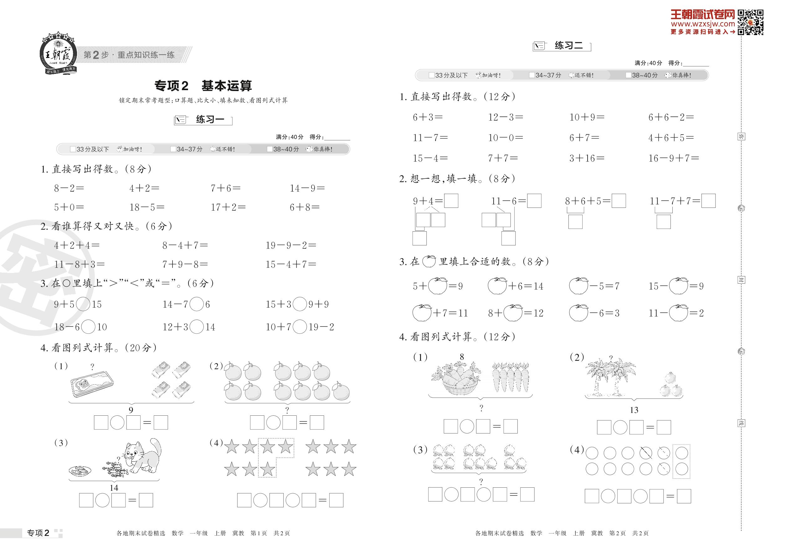 王朝霞期末专项卷——基本运算一年级上册数学(冀教版)【2】