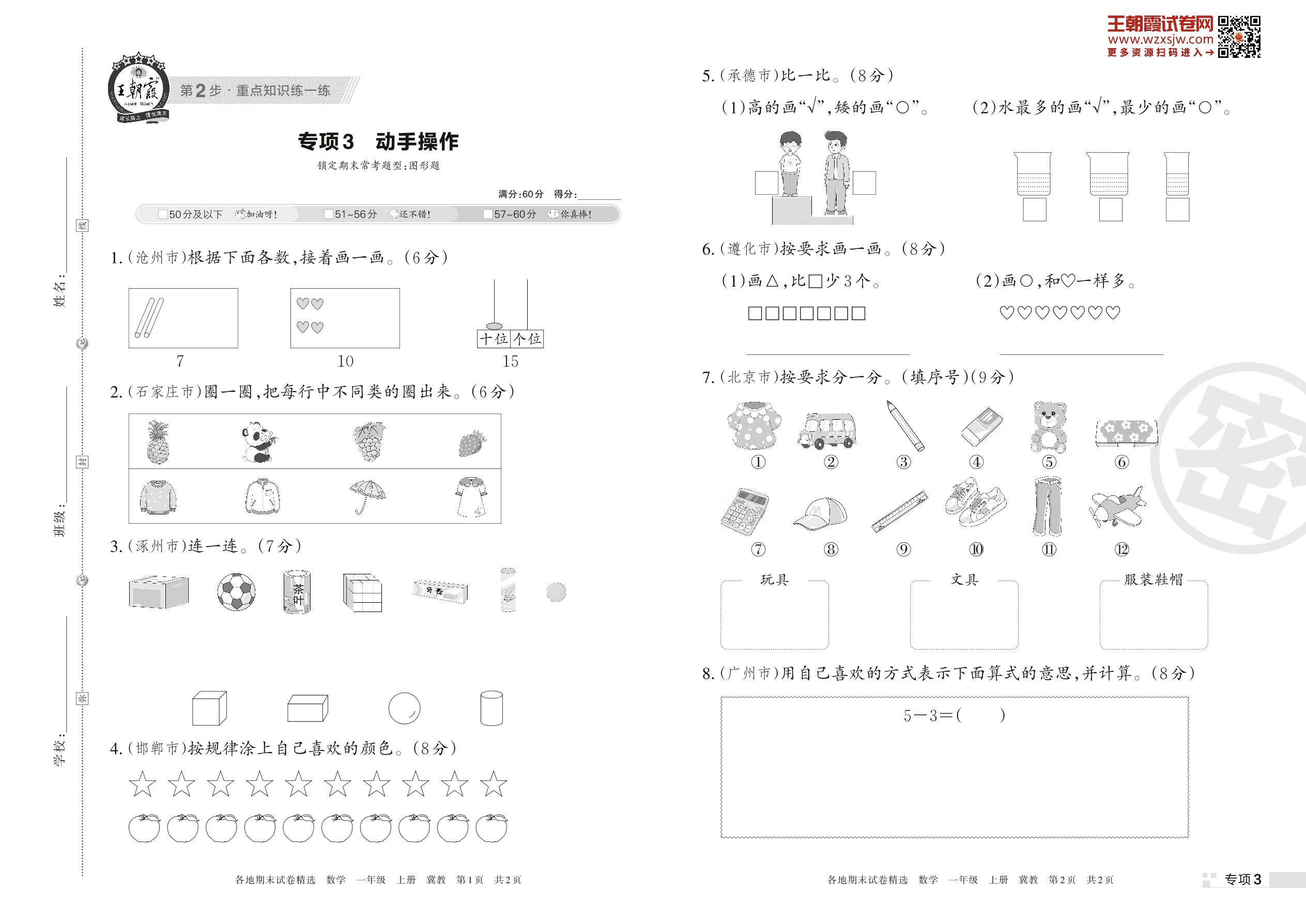 王朝霞期末专项卷——动手操作一年级上册数学(冀教版)【3】