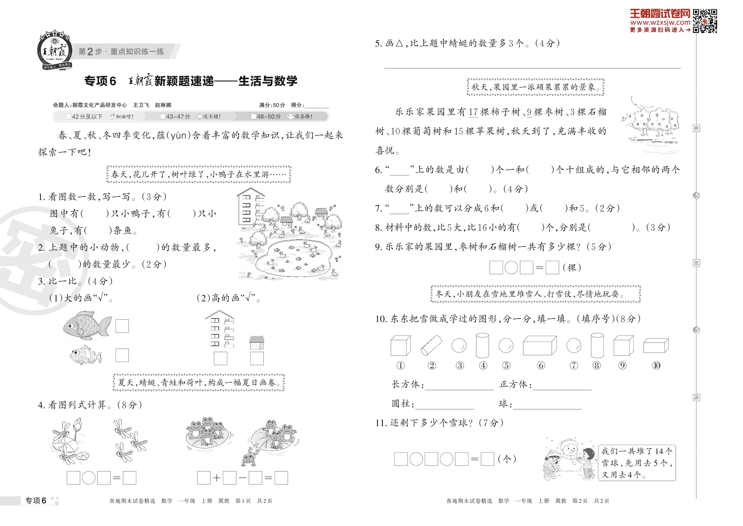 王朝霞期末专项卷——王朝霞新颖题速递:生活与数学一年级上册数学(冀教版)【6】