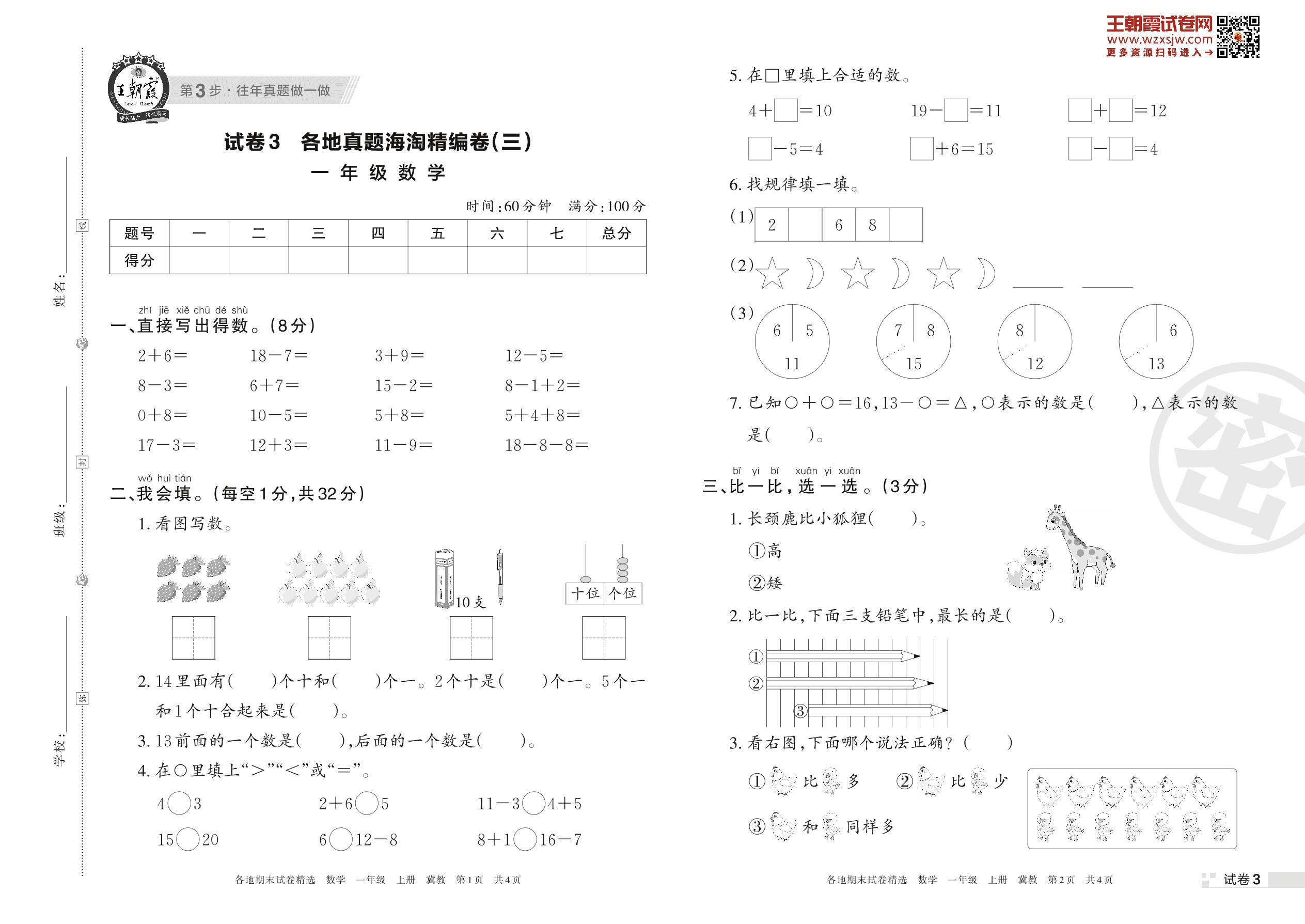 各地真题海淘精编卷(三)一年级上册数学(冀教版)【3】