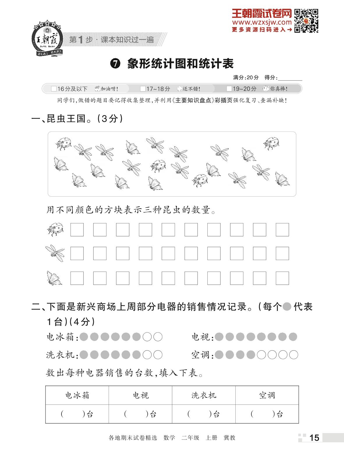 王朝霞期末过课本——7 象形统计图和统计表二年级上册数学(冀教版)