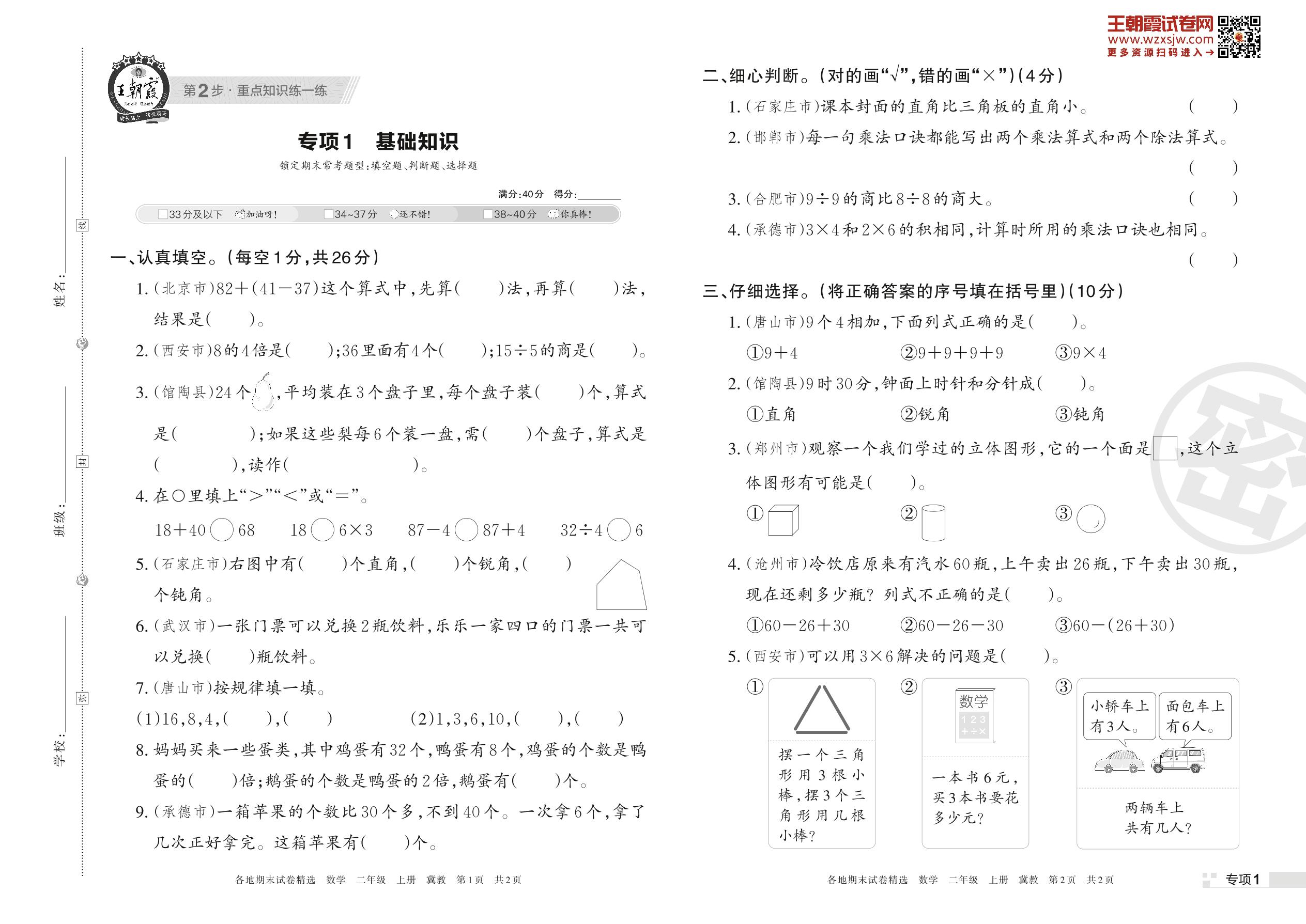 王朝霞期末专项卷——基础知识二年级上册数学(冀教版)【1】