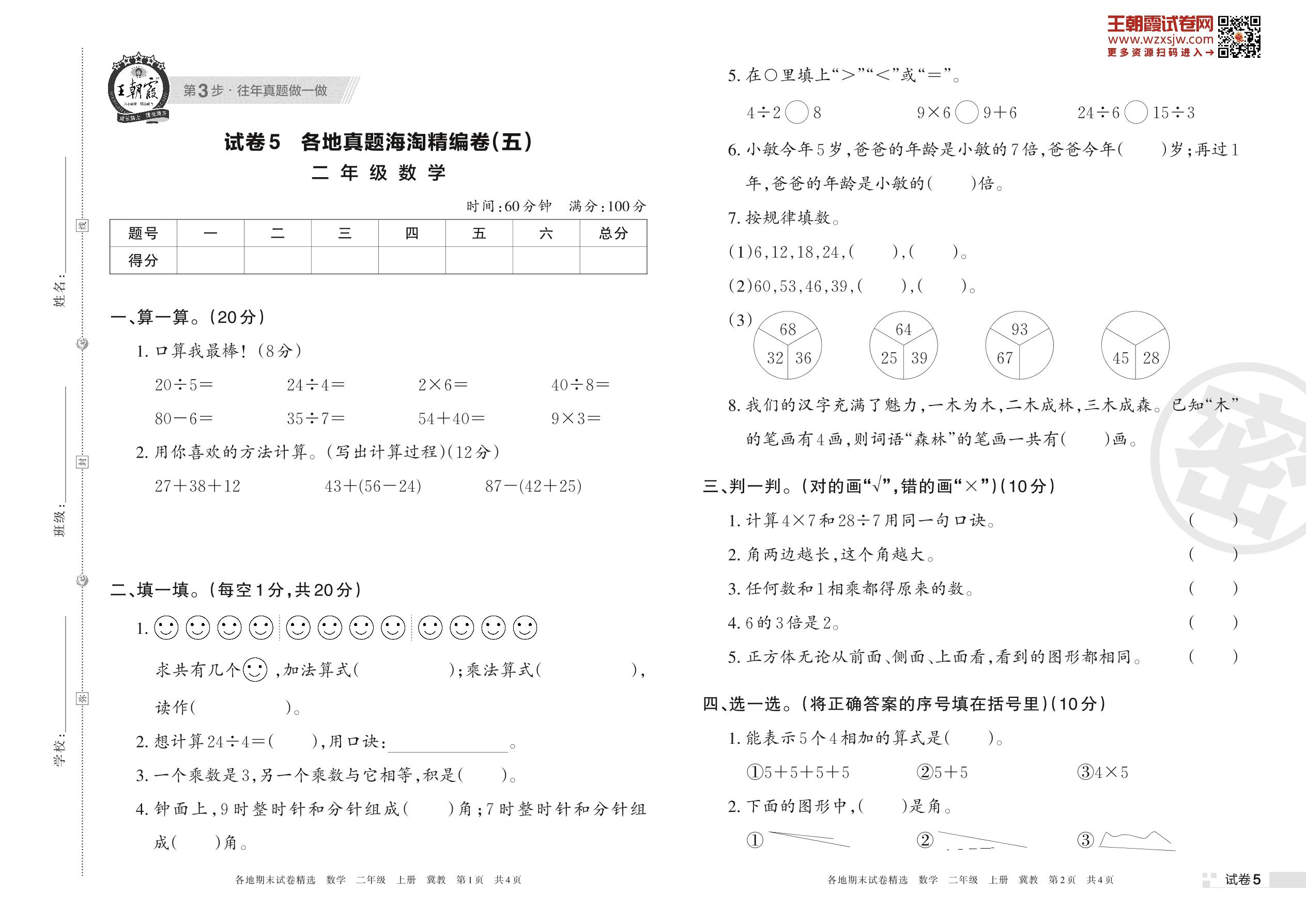各地真题海淘精编卷(五)二年级上册数学(冀教版)【5】