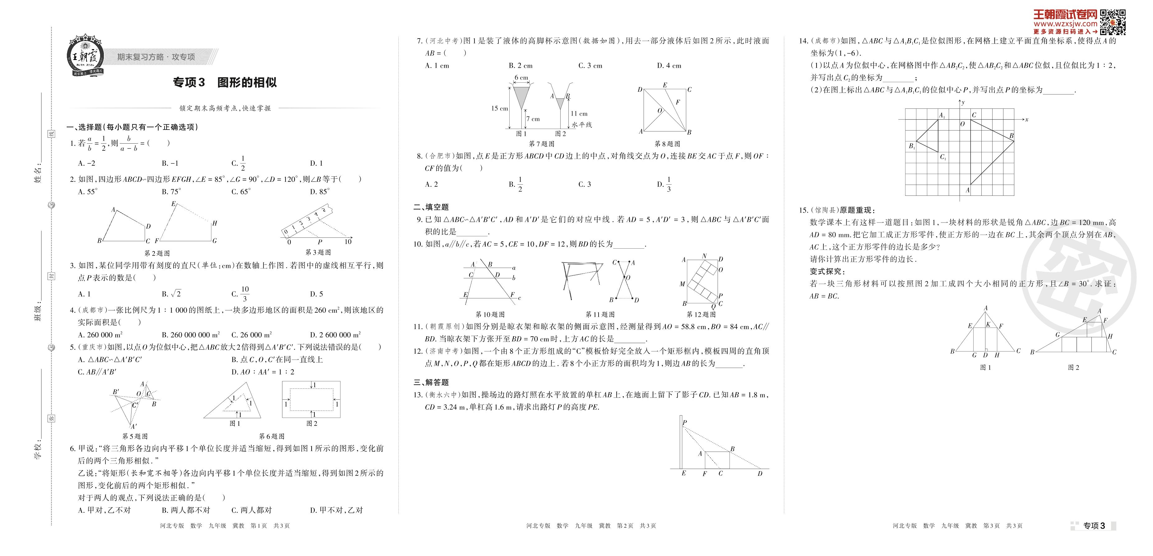 2022-2023学年第一学期王朝霞期末专项卷——图形的相似九年级全一册数学(冀教版)【3】