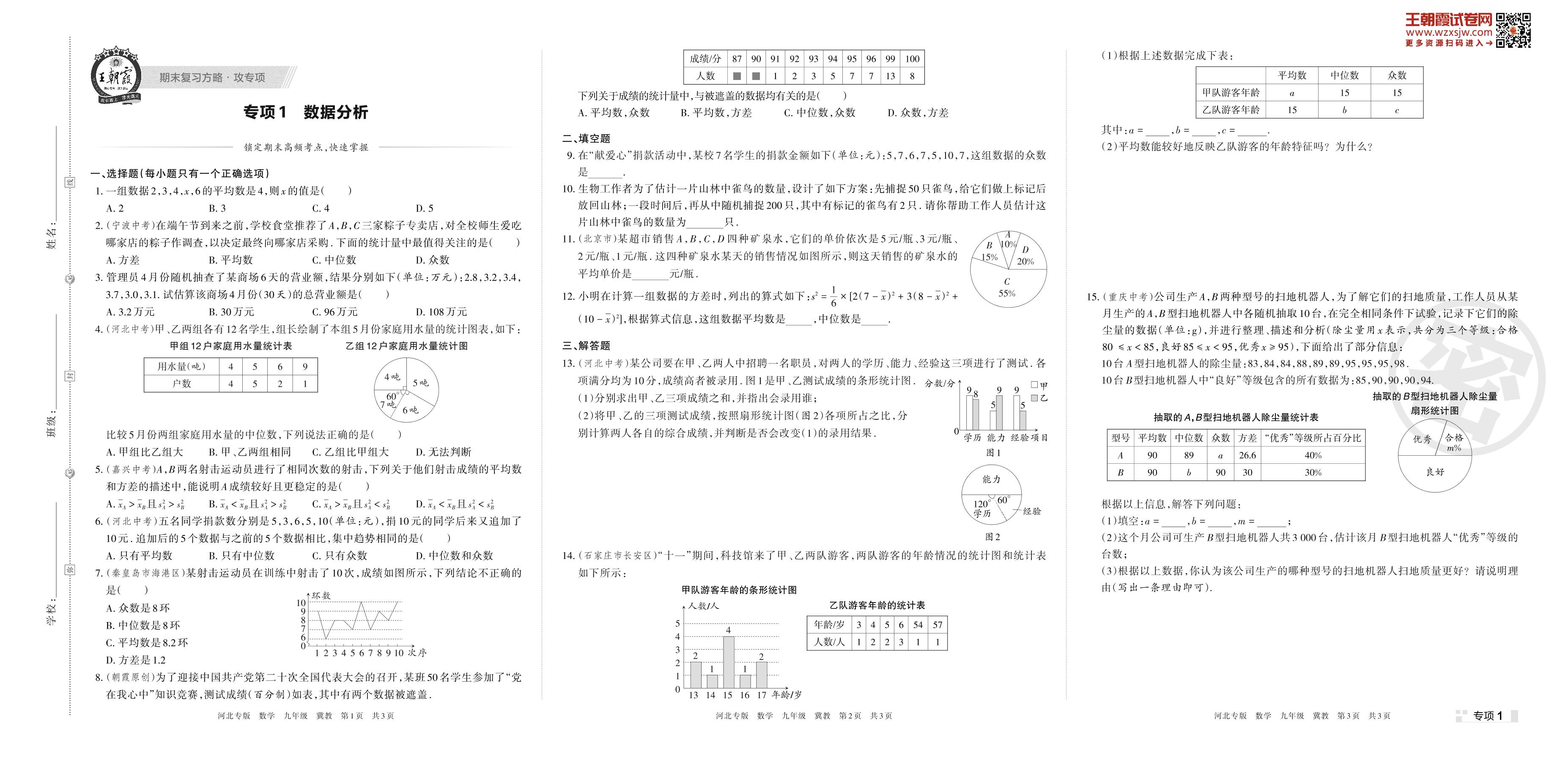 2022-2023学年第一学期王朝霞期末专项卷——数据分析九年级全一册数学(冀教版)【1】