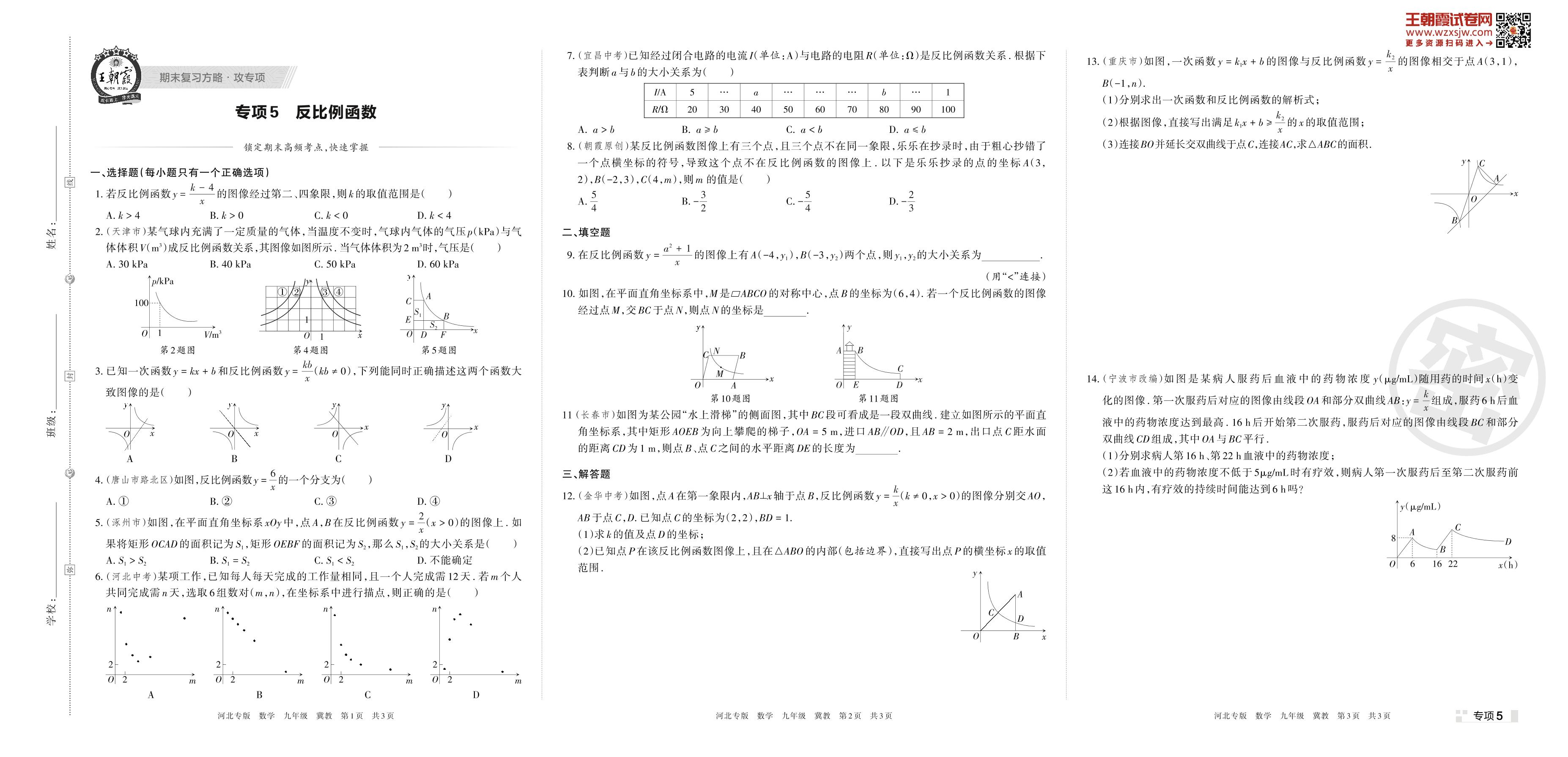2022-2023学年第一学期王朝霞期末专项卷——反比例函数九年级全一册数学(冀教版)【5】
