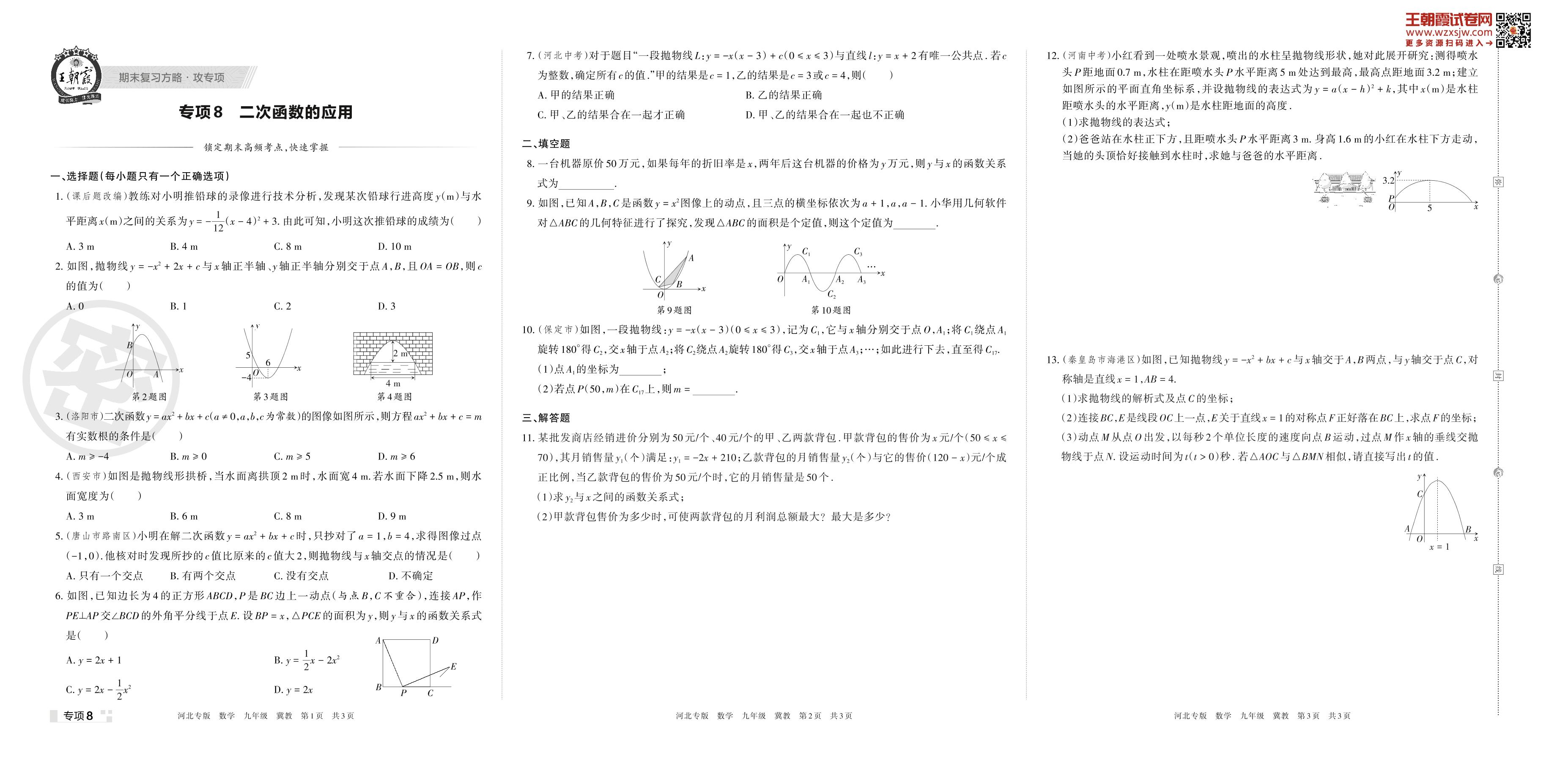 2022-2023学年第一学期王朝霞期末专项卷——二次函数的应用九年级全一册数学(冀教版)【8】