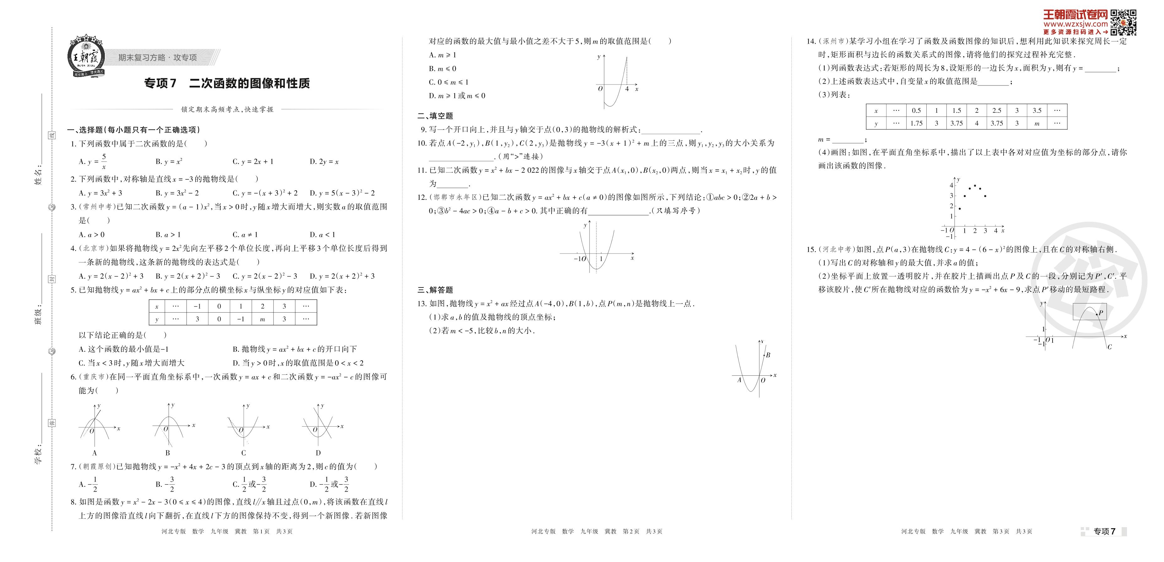 2022-2023学年第一学期王朝霞期末专项卷——二次函数的图像和性质九年级全一册数学(冀教版)【7】