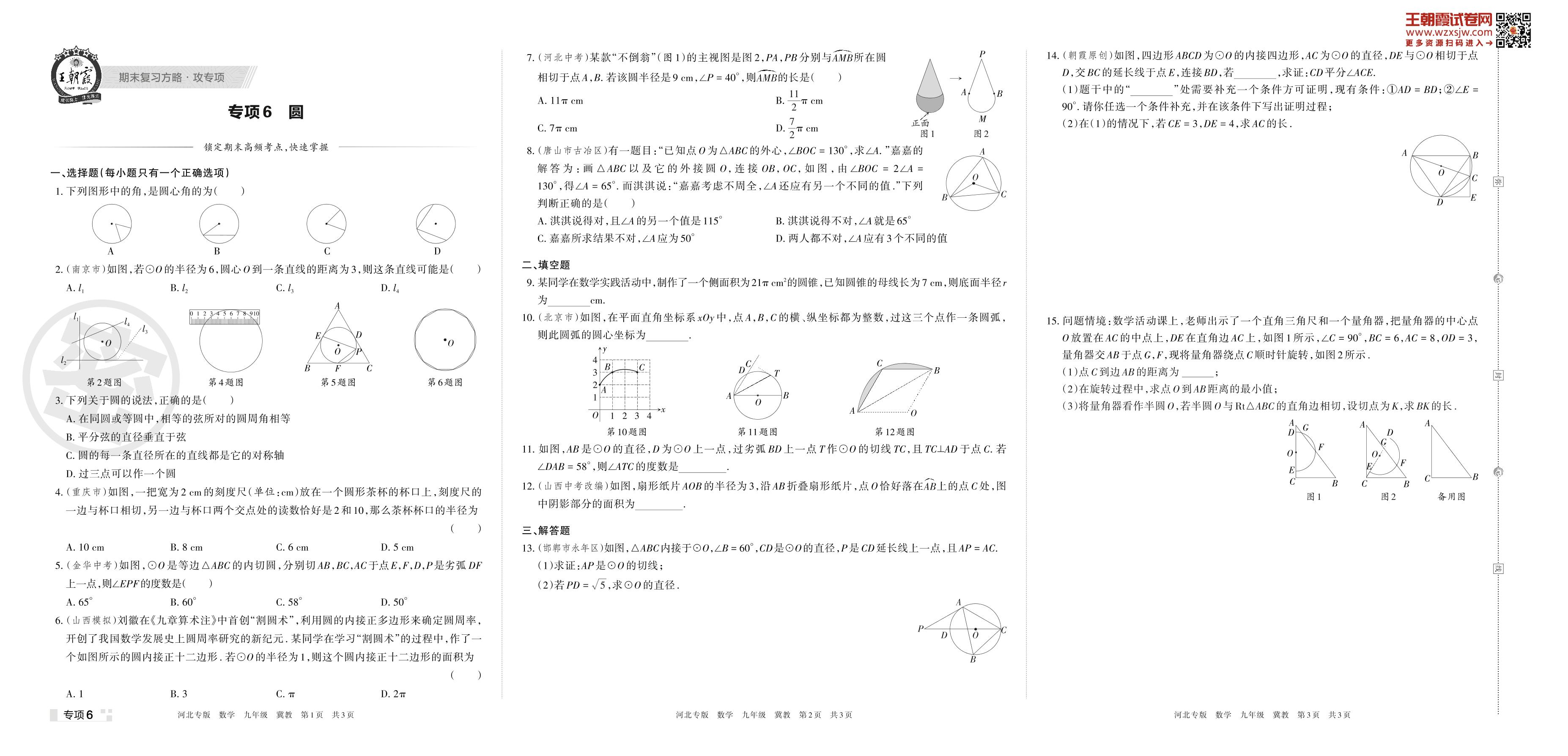 2022-2023学年第一学期王朝霞期末专项卷——圆九年级全一册数学(冀教版)【6】
