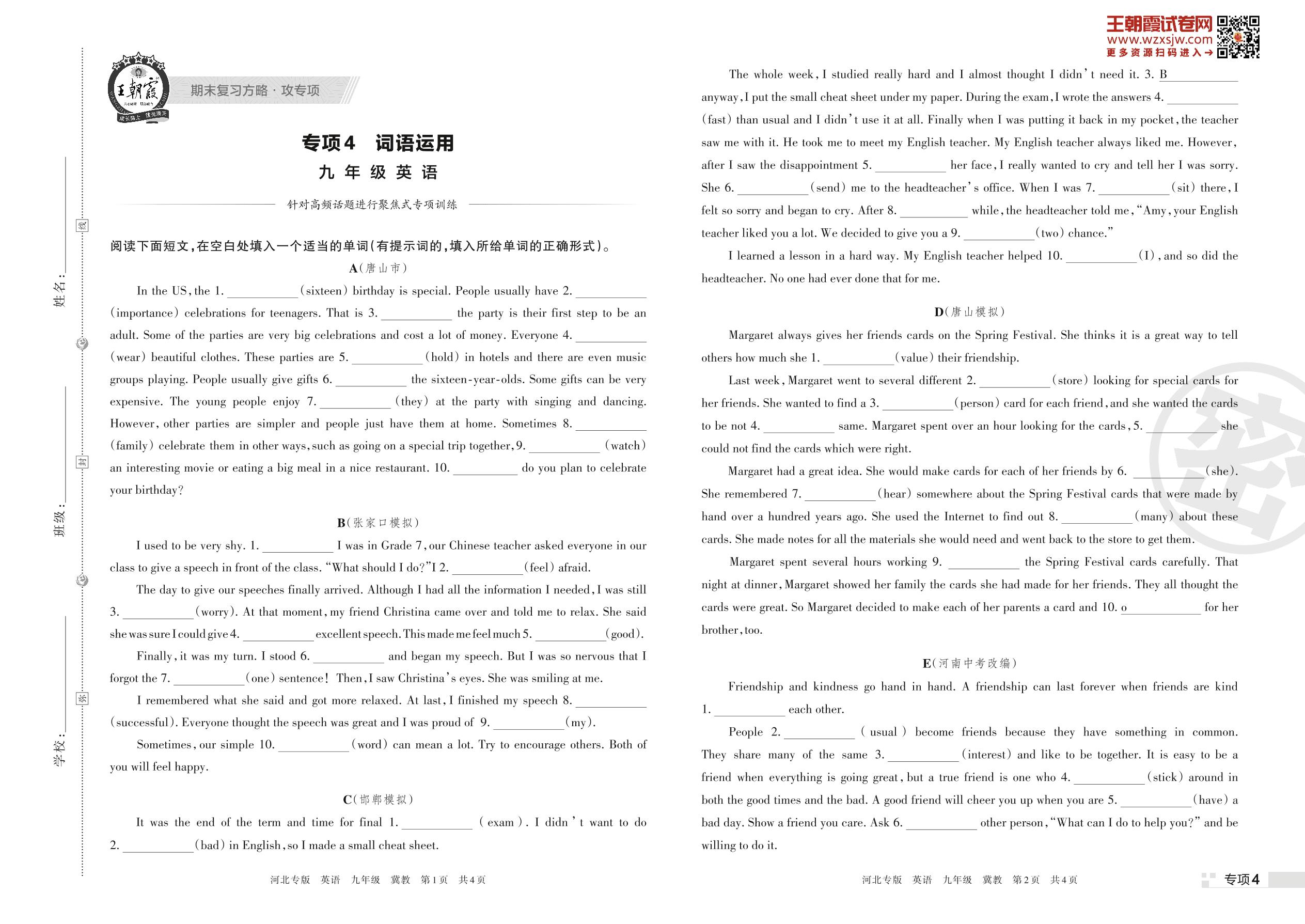 2022-2023学年第一学期王朝霞期末专项卷——词语运用九年级全一册英语(冀教版)【4】