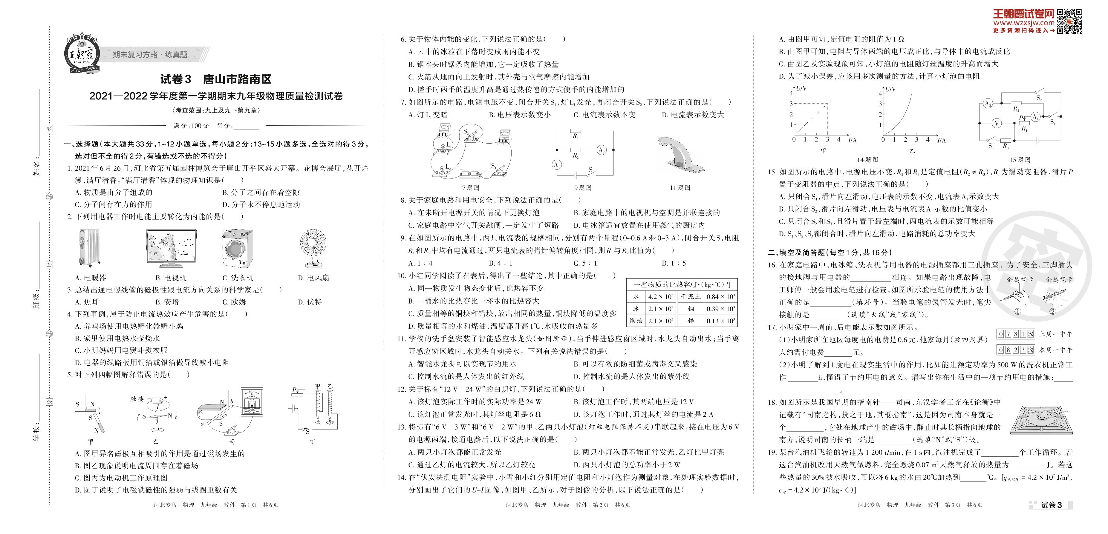 唐山市路南区2021—2022学年度第一学期期末九年级物理质量检测试卷(教科版)【3】