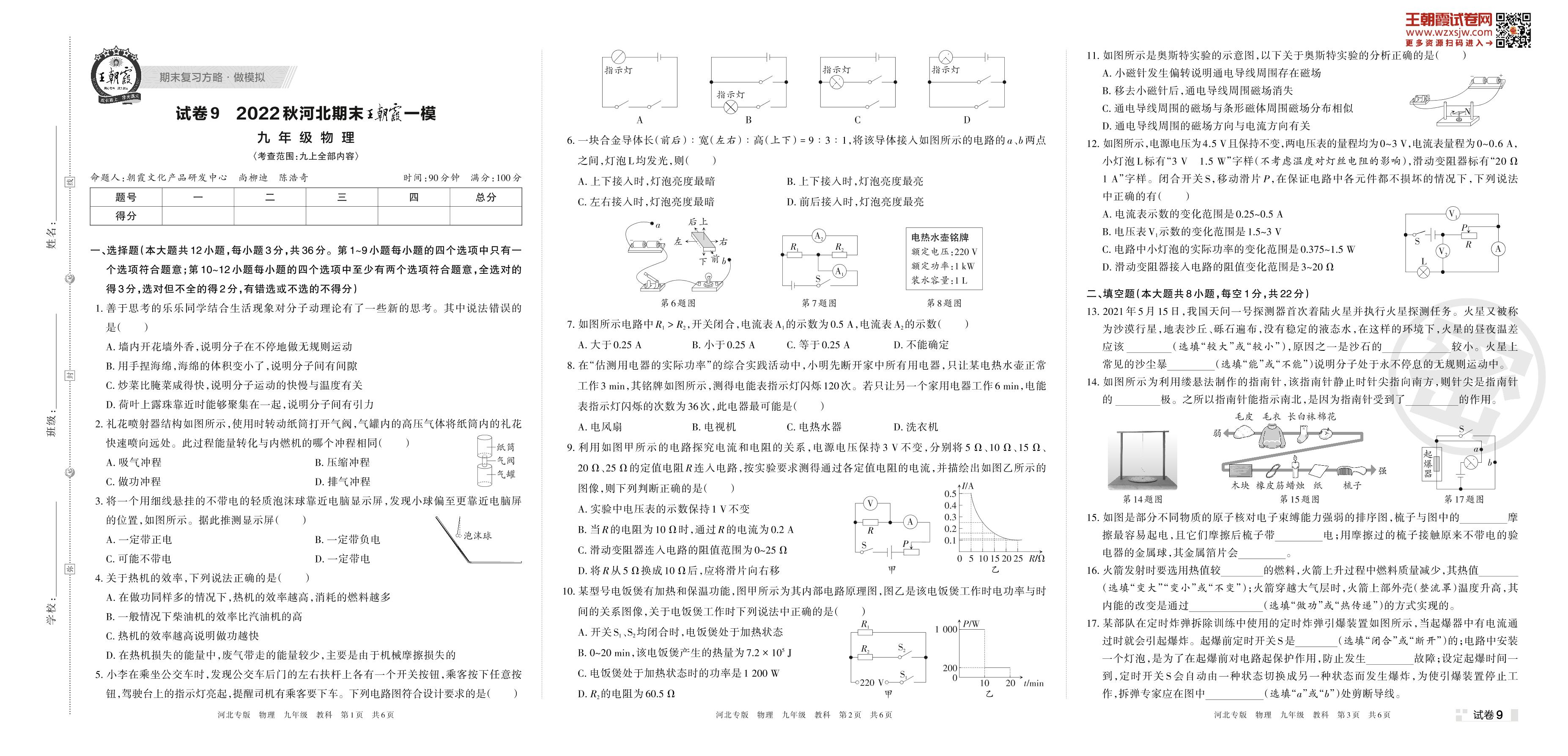 2022秋上册河北期末王朝霞一模九年级物理(教科版)_R221122150707528【9】