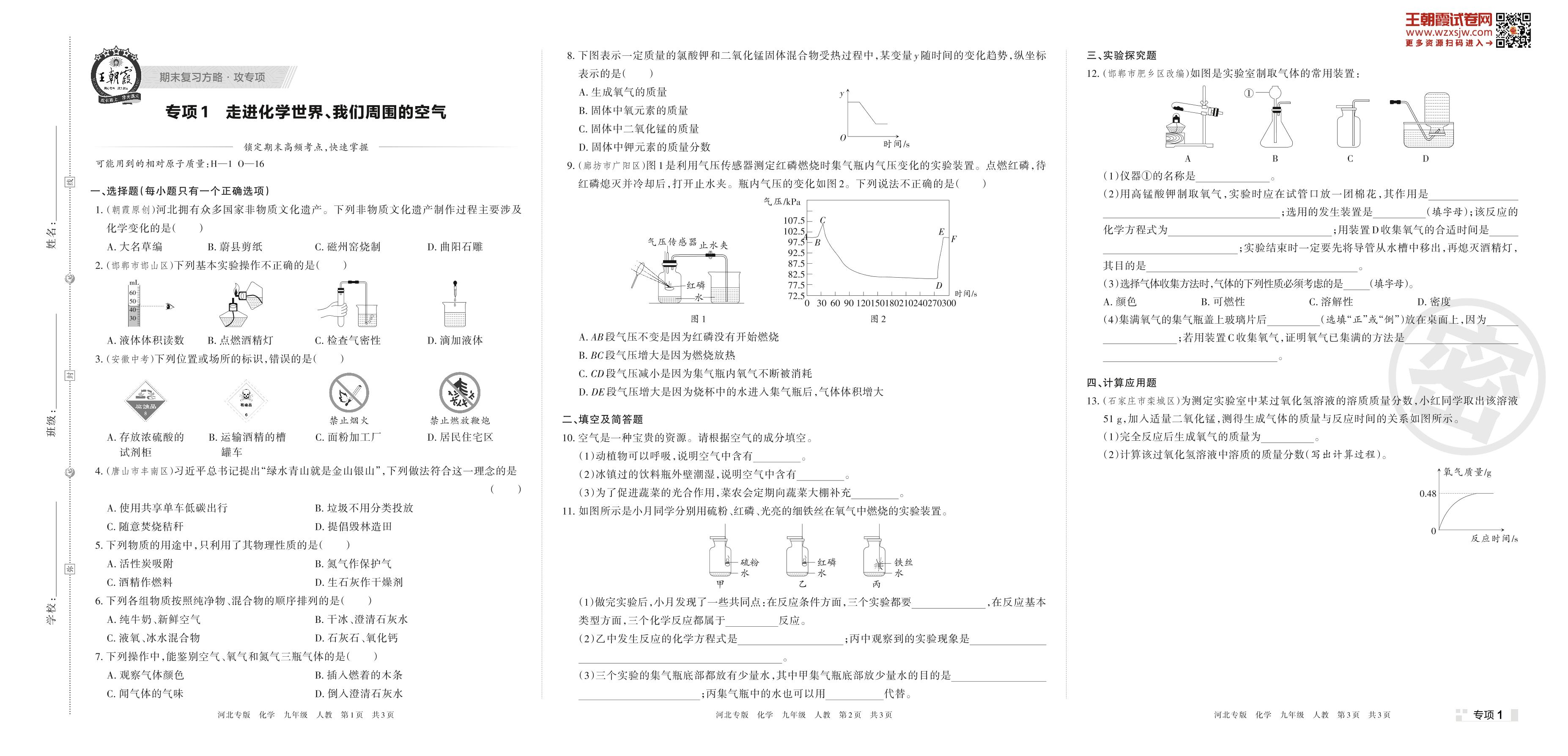 2022-2023学年第一学期期末专项卷——走进化学世界、我们周围的空气九年级化学(人教版)【1】