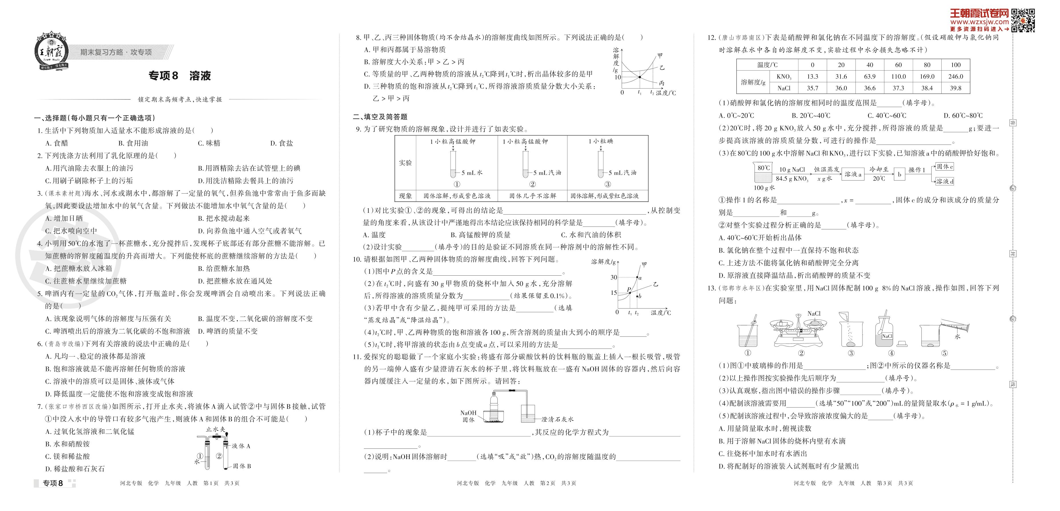 2022-2023学年第一学期期末专项卷——溶液九年级化学(人教版)【8】