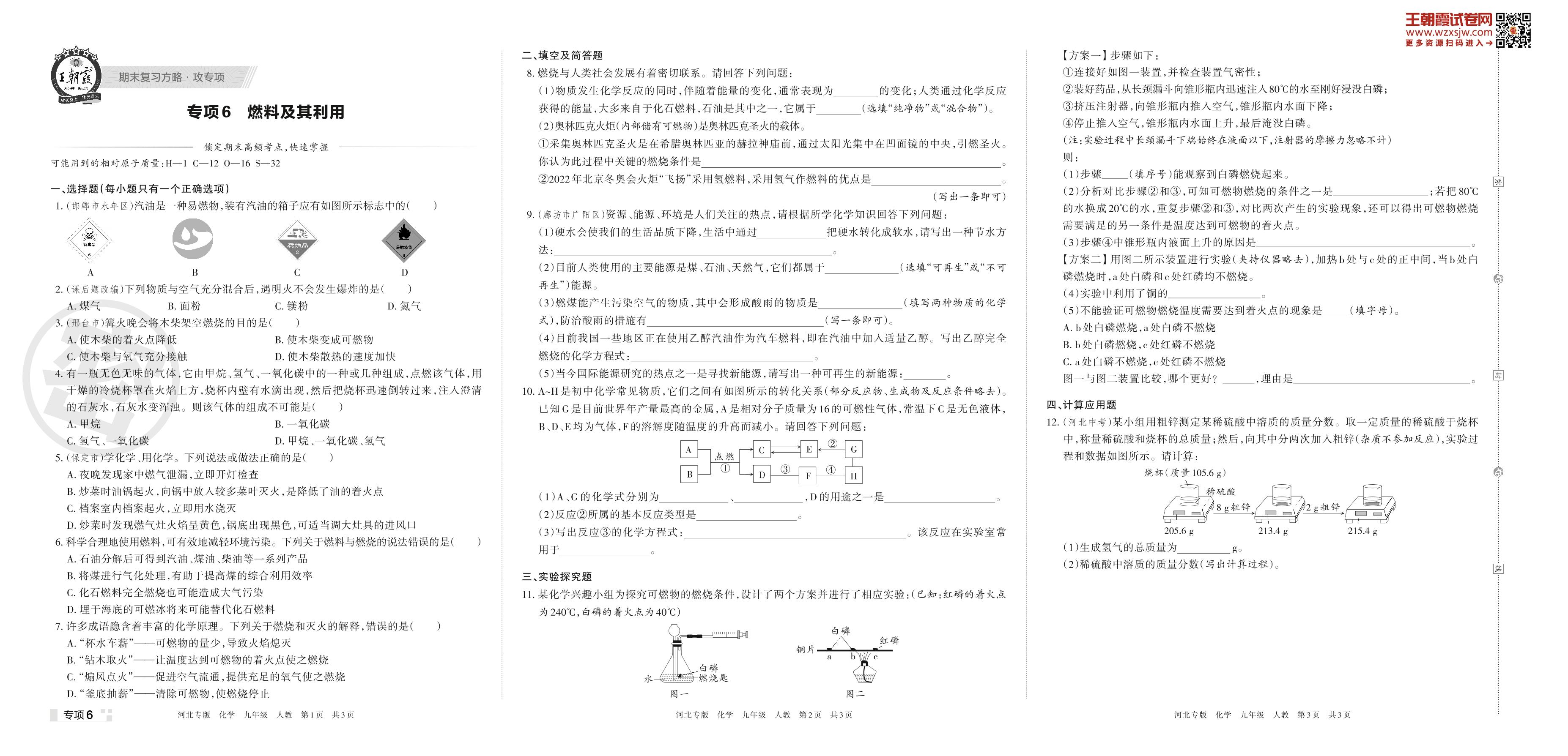 九年级化学人教版上册专项卷
