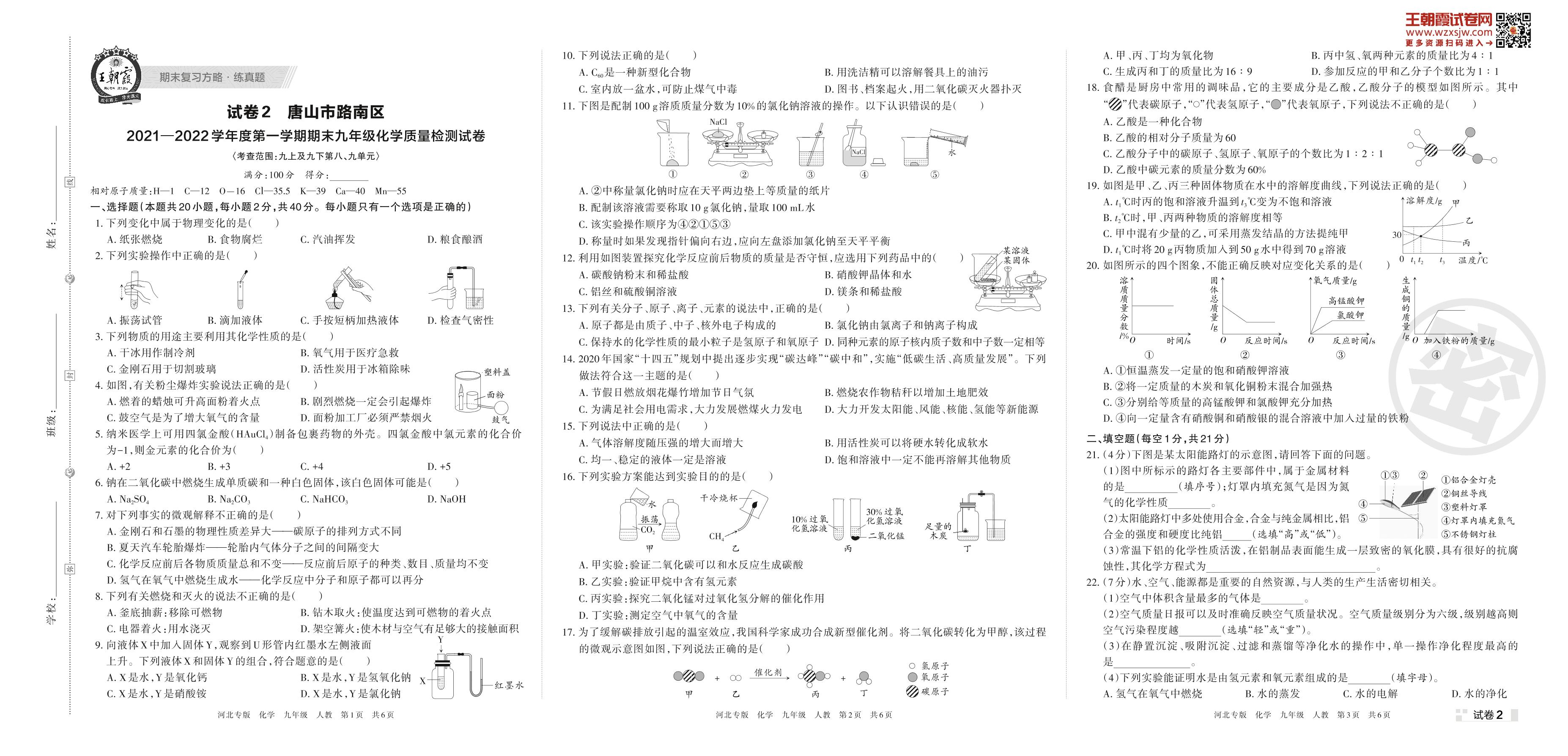 唐山市路南区2021—2022学年度第一学期期末九年级化学质量检测试卷(人教版)【2】