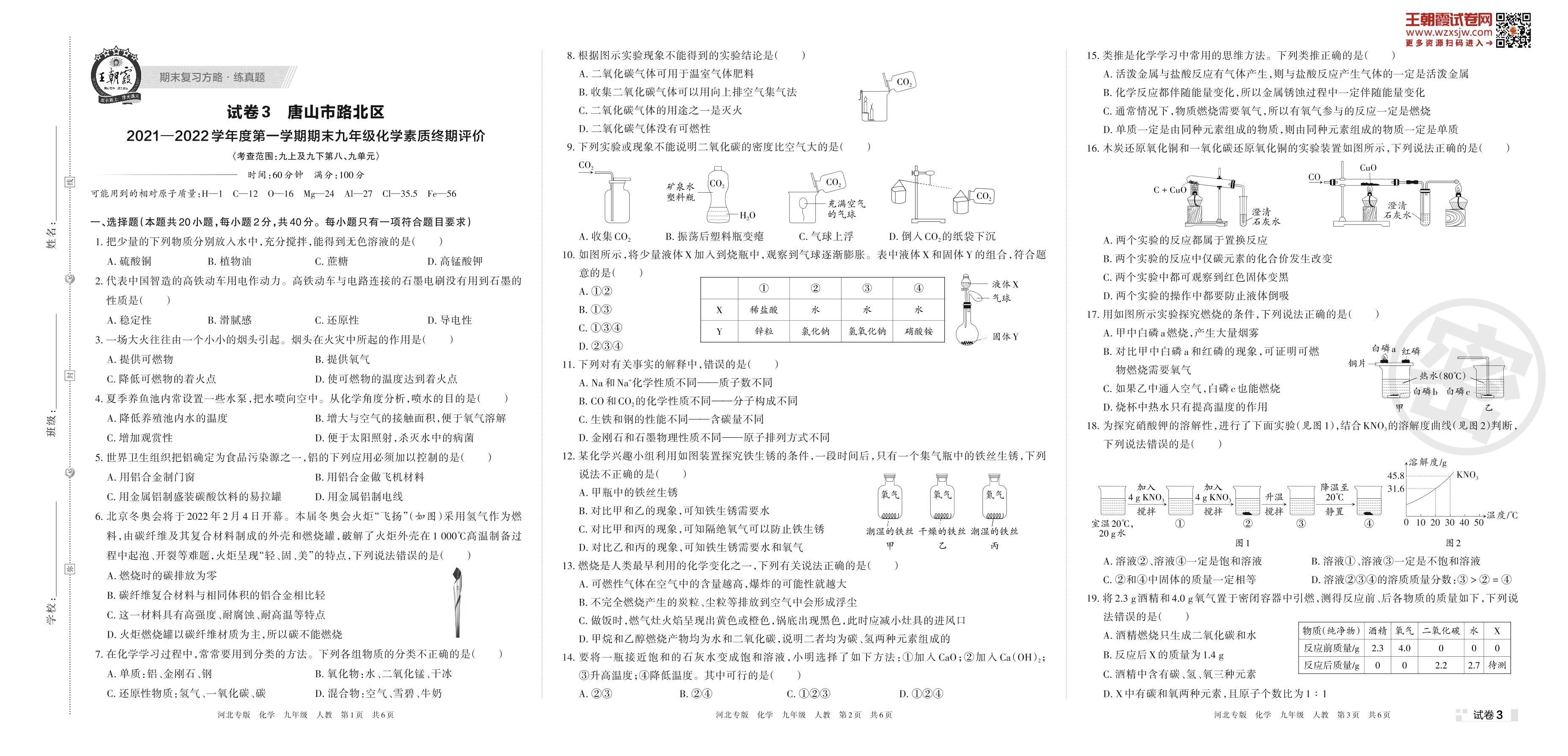 唐山市路北区2021—2022学年度第一学期期末九年级化学素质终期评价(人教版)【3】
