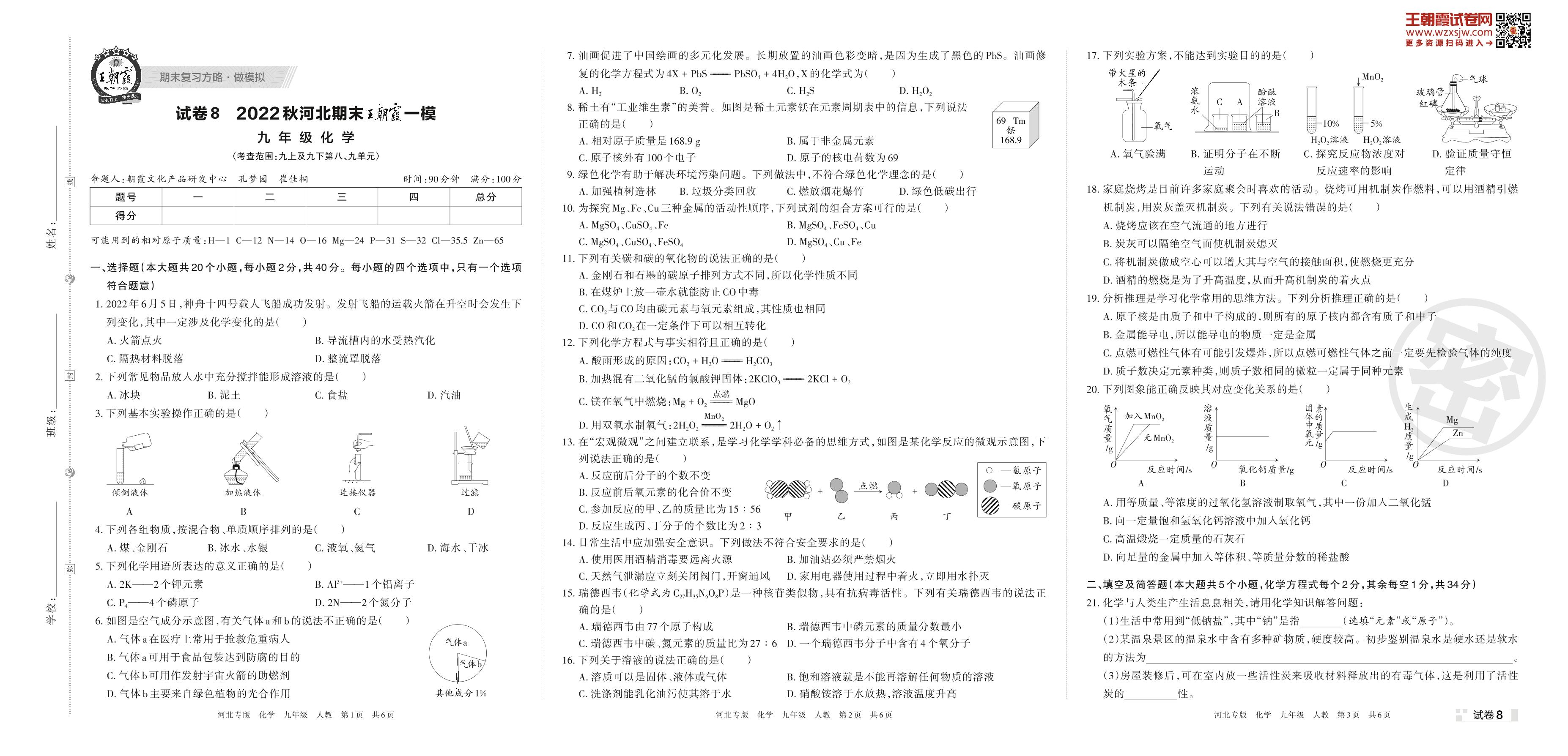 2022-2023学年第一学期期末模拟卷九年级化学(人教版)_R221122151306273【8】