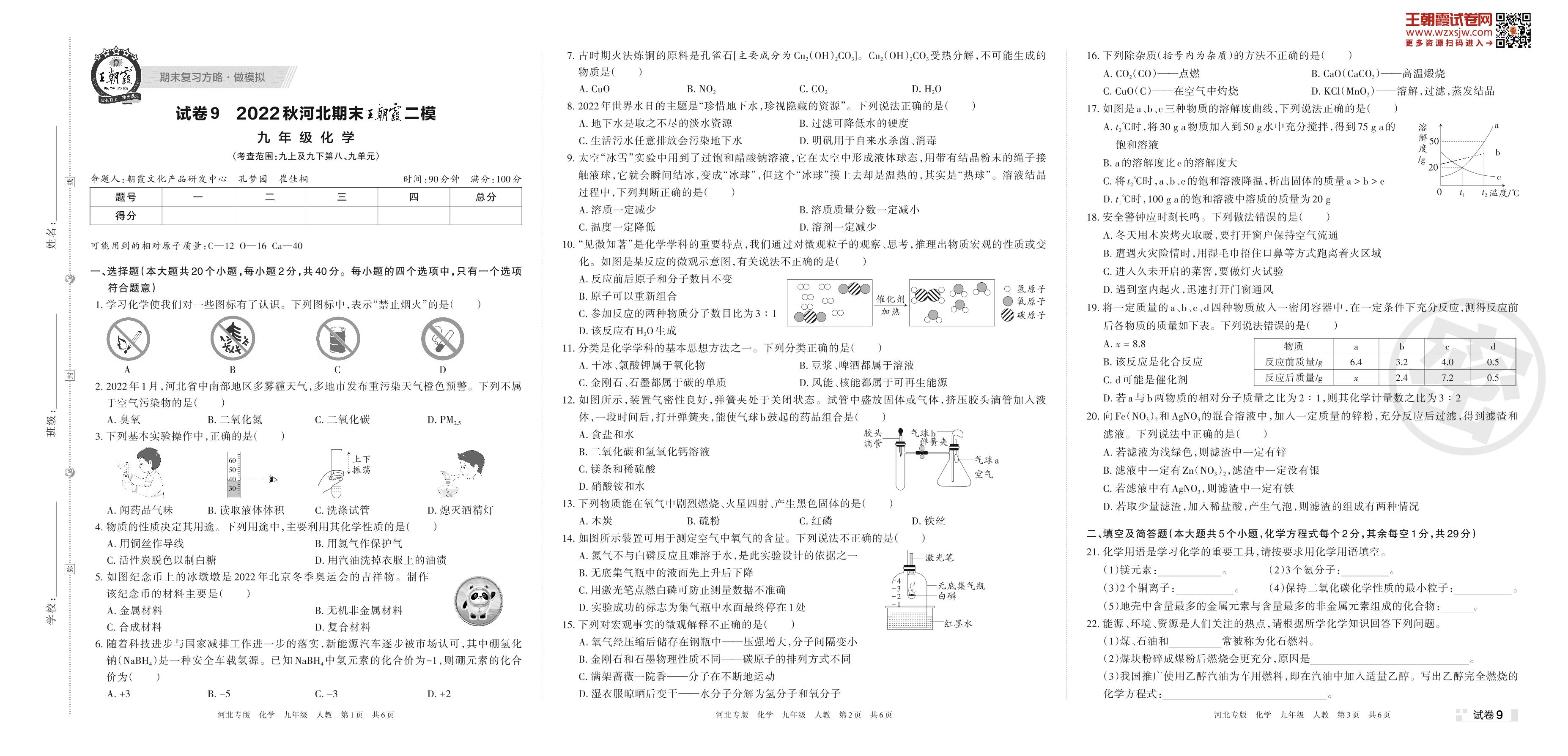 2022-2023学年第一学期期末模拟卷九年级化学(人教版)_R221122151306198【9】