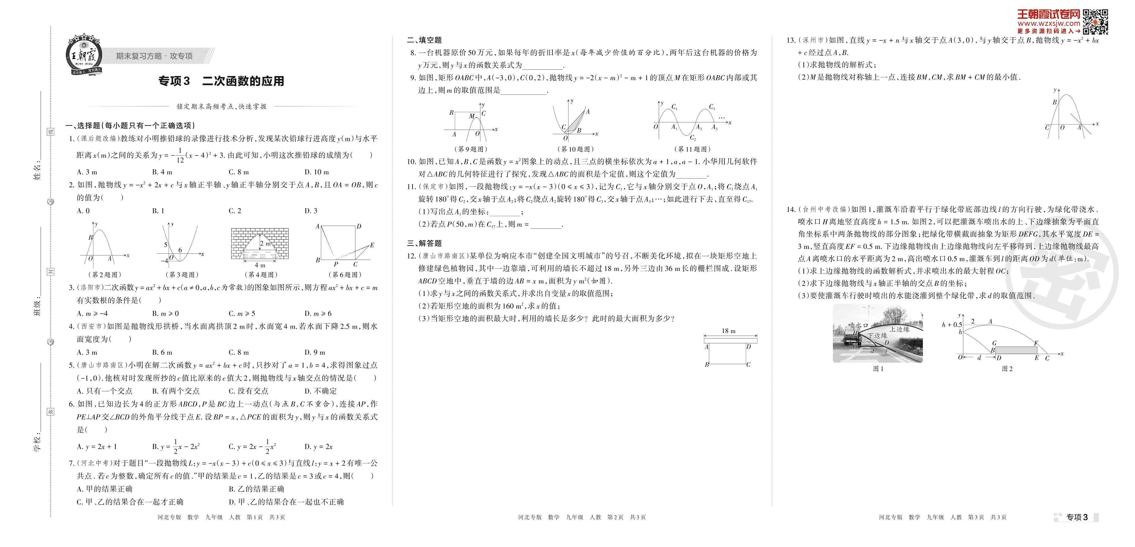 2022-2023学年第一学期王朝霞期末专项卷——二次函数的应用九年级全一册数学(人教版)【3】