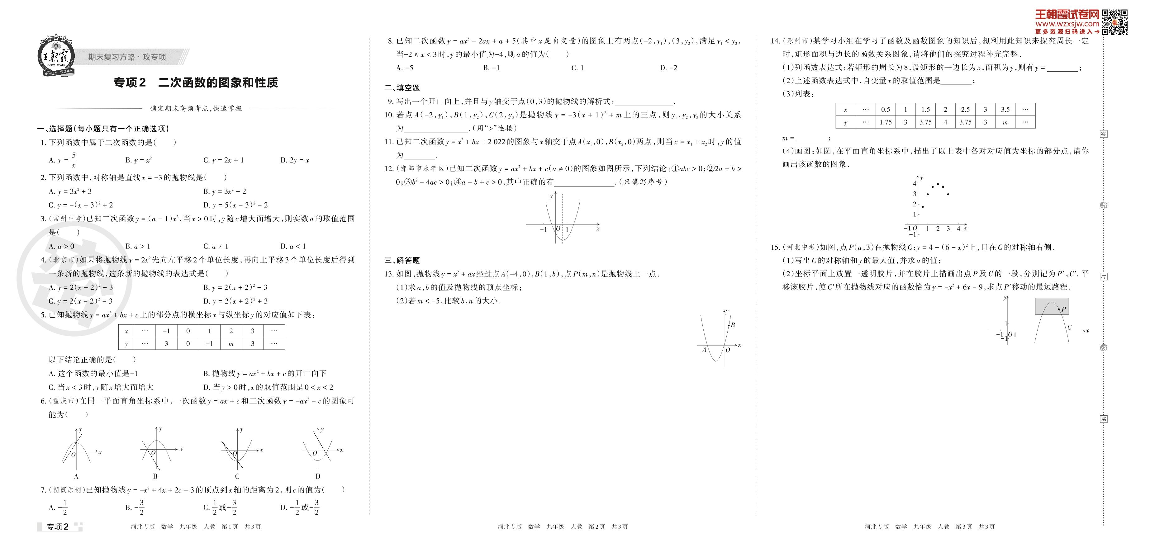 2022-2023学年第一学期王朝霞期末专项卷——二次函数的图象和性质九年级全一册数学(人教版)【2】
