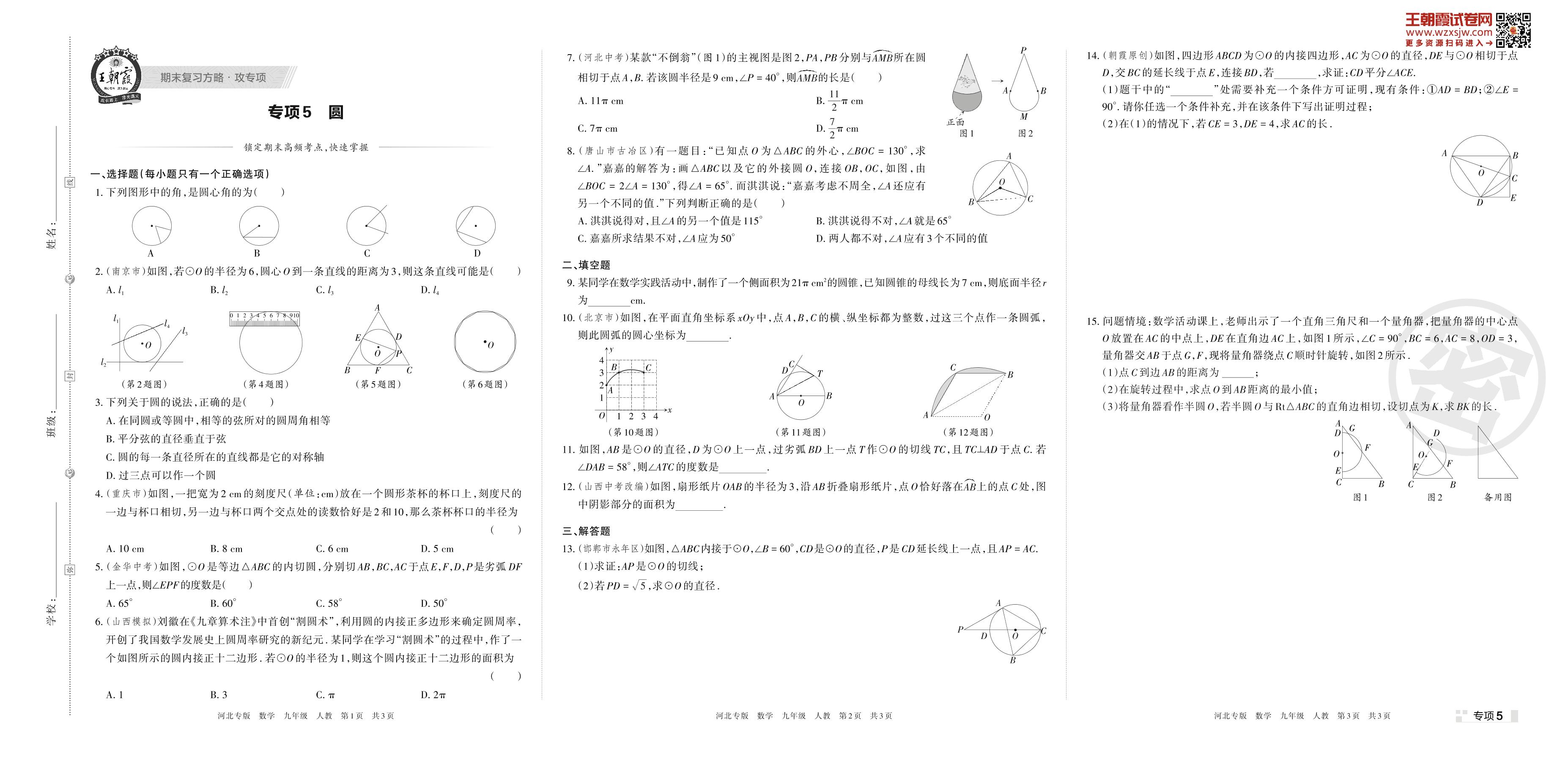 2022-2023学年第一学期王朝霞期末专项卷——圆九年级全一册数学(人教版)【5】