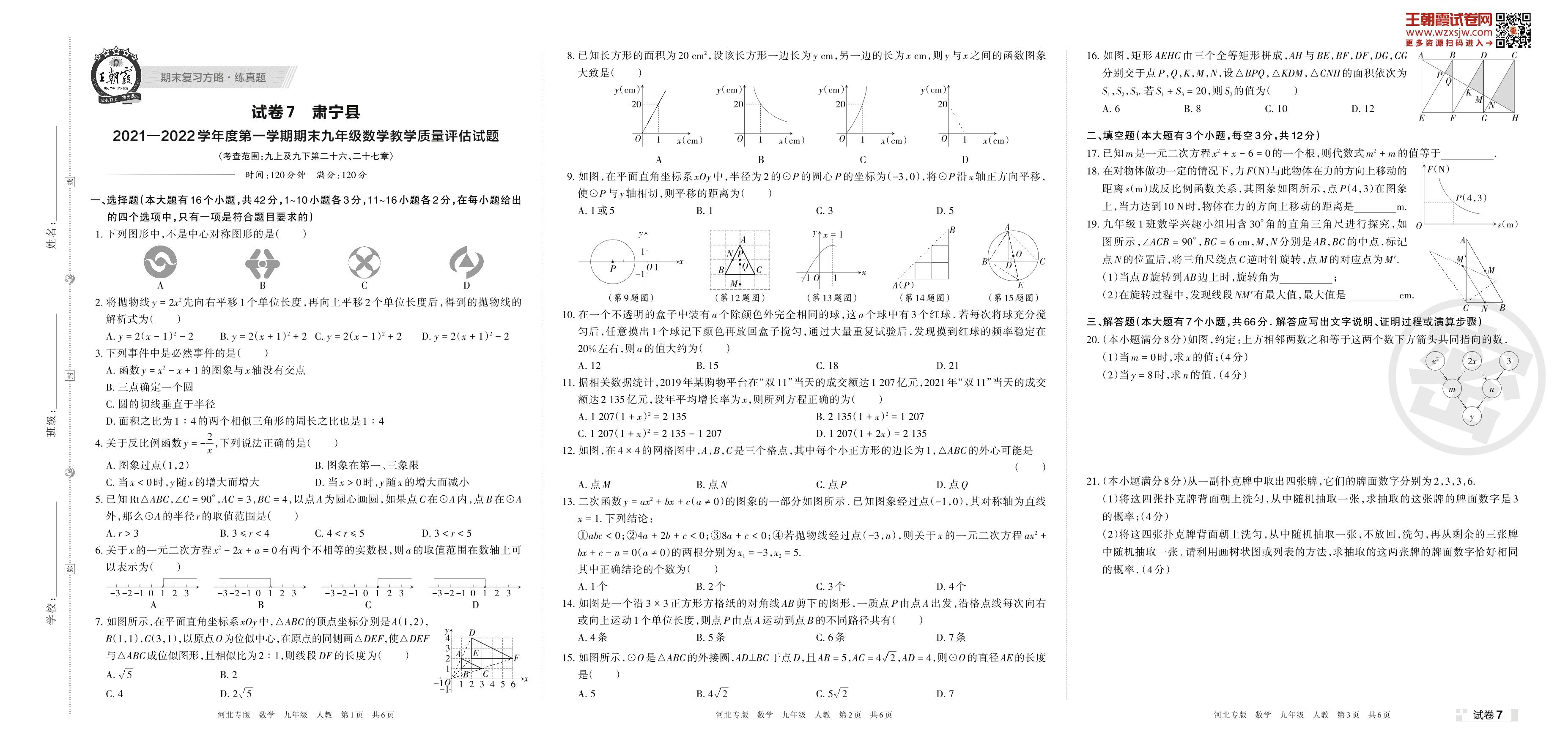 肃宁县2021—2022学年度第一学期期末九年级数学教学质量评估试题(人教版)【7】