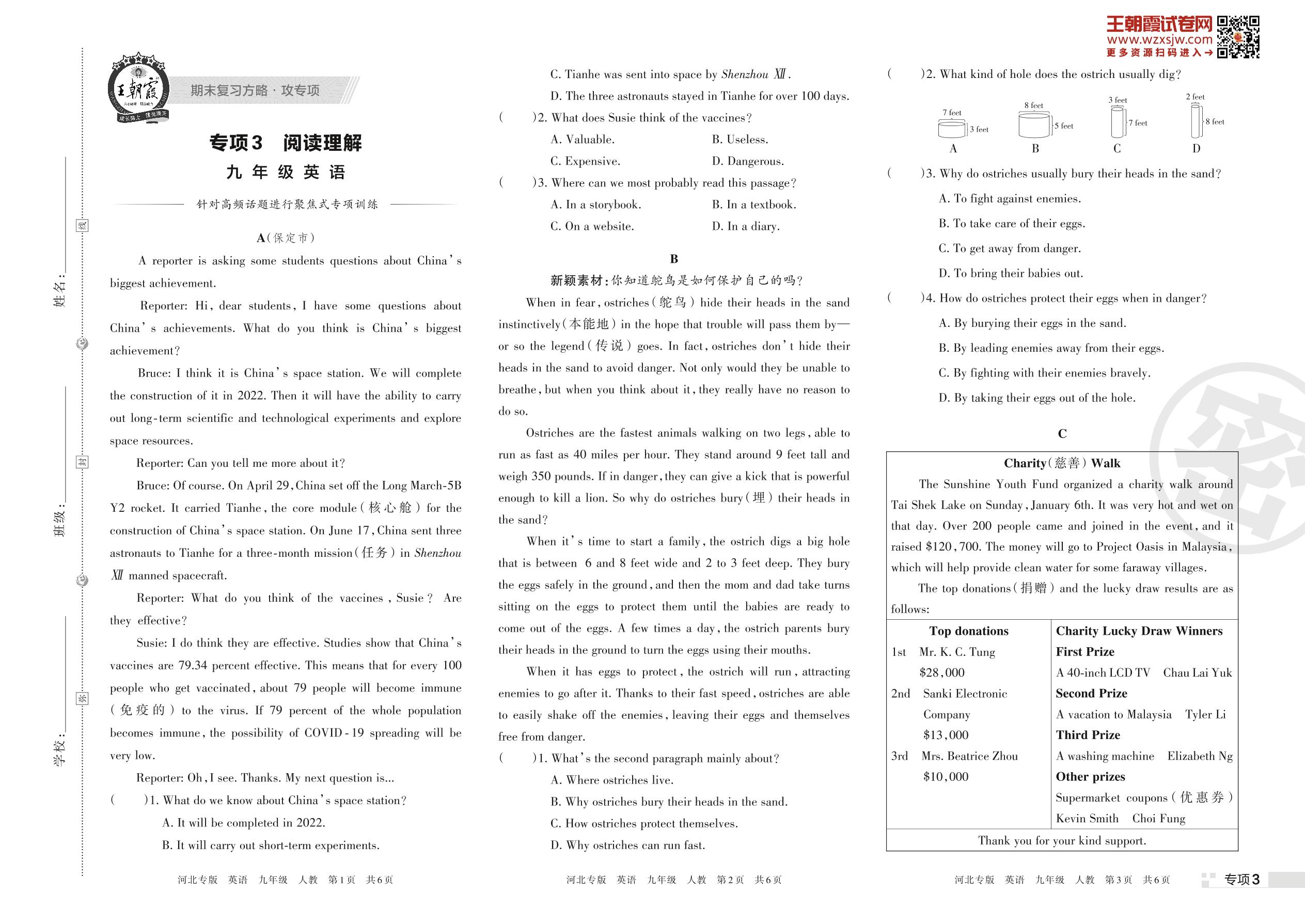 2022-2023学年第一学期王朝霞期末专项卷——阅读理解九年级全一册英语(人教版)【3】