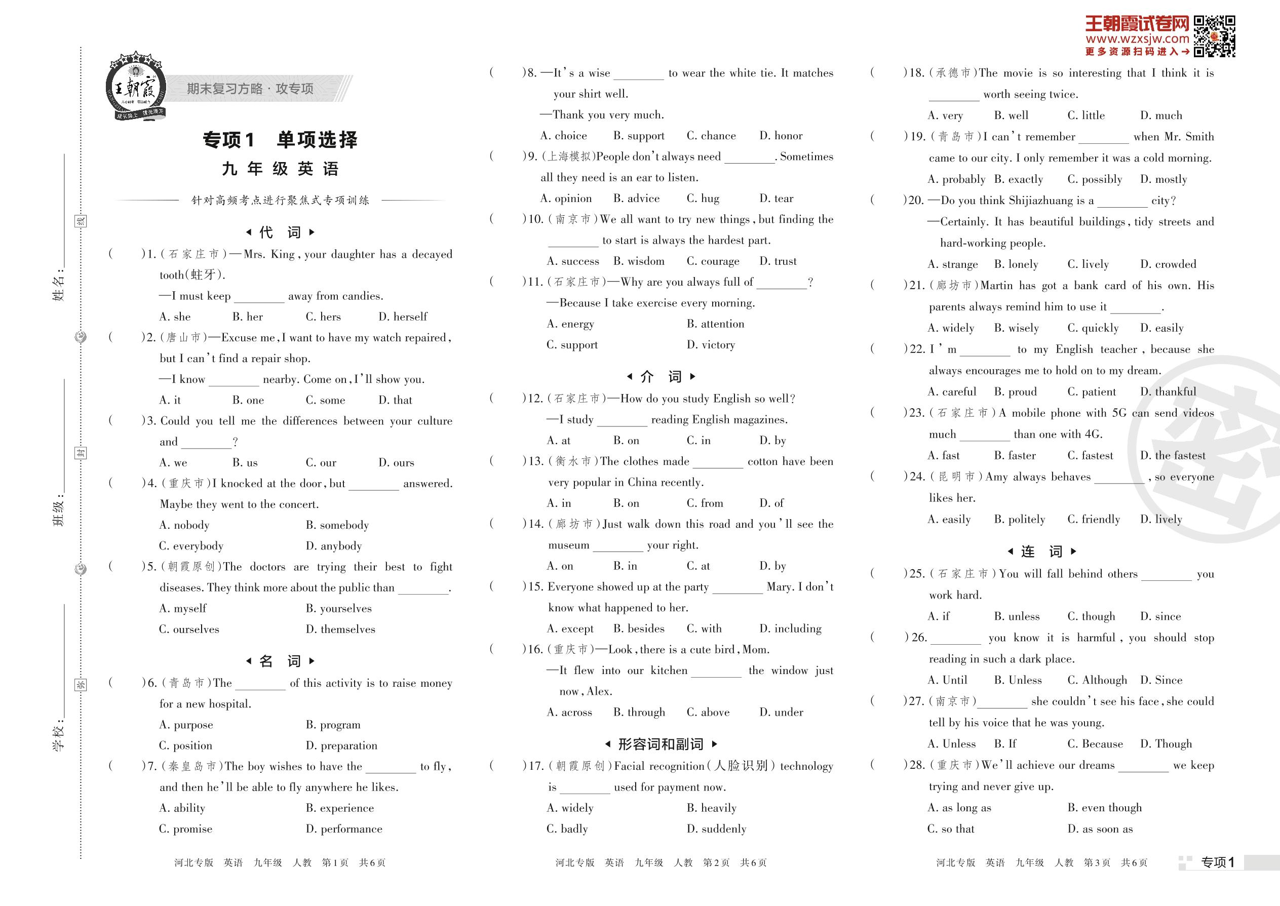 2022-2023学年第一学期王朝霞期末专项卷——单项选择九年级全一册英语(人教版)【1】
