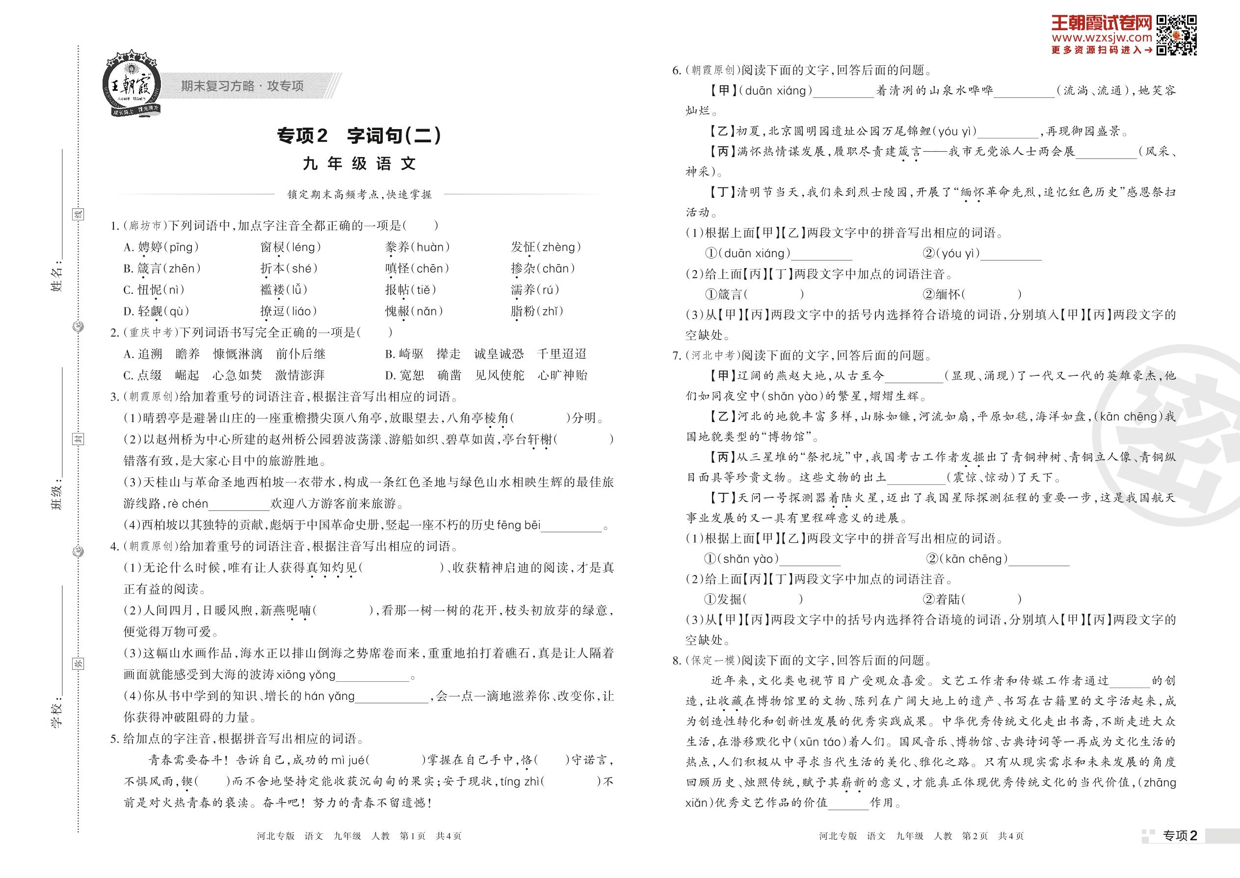 2022-2023学年第一学期王朝霞期末专项卷——字词句(二)九年级全一册语文(人教版)【2】