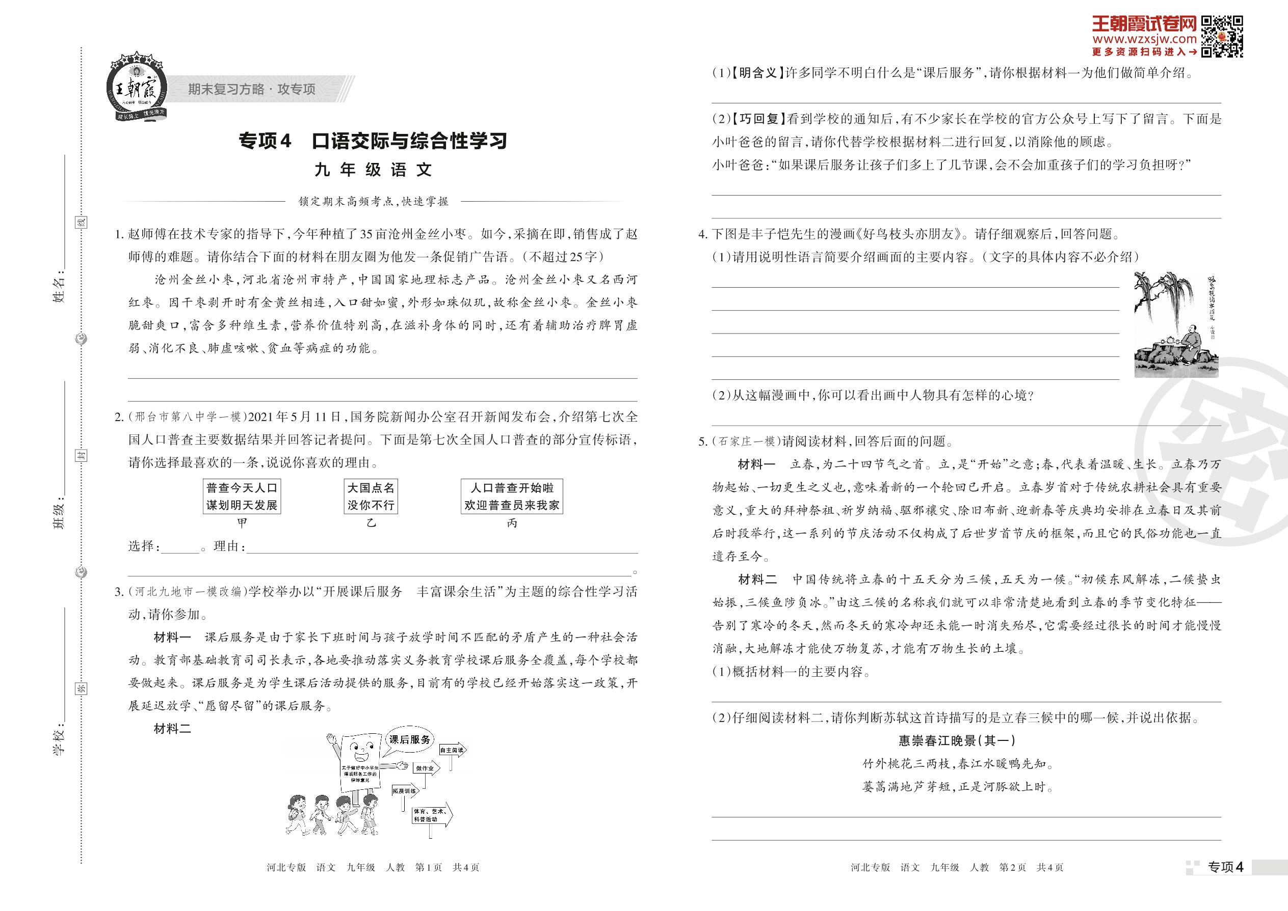 2022-2023学年第一学期王朝霞期末专项卷——口语交际与综合性学习九年级全一册语文(人教版)【4】