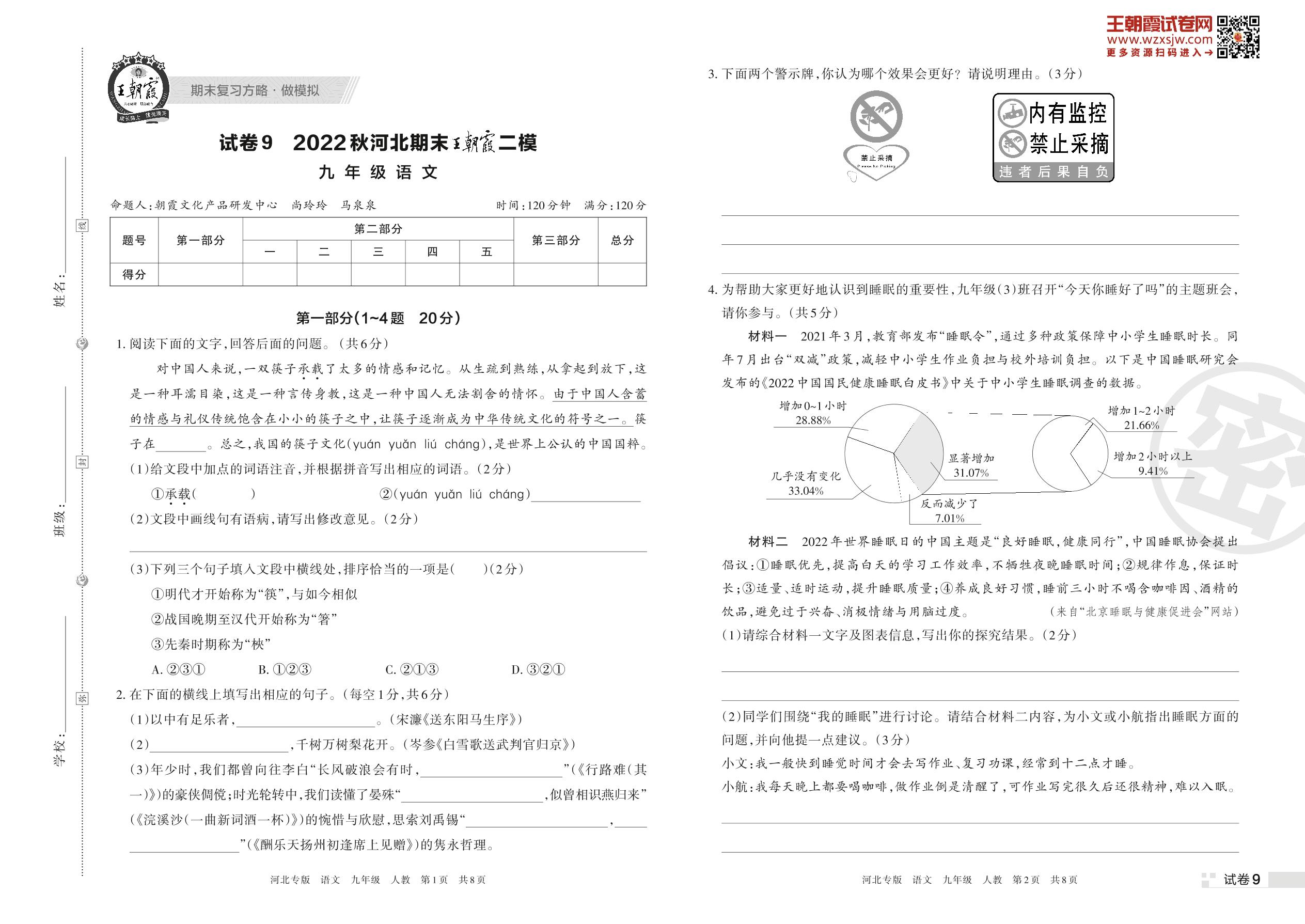 2022-2023学年第一学期王朝霞期末模拟卷九年级全一册语文(人教版)_R221122155337754【9】
