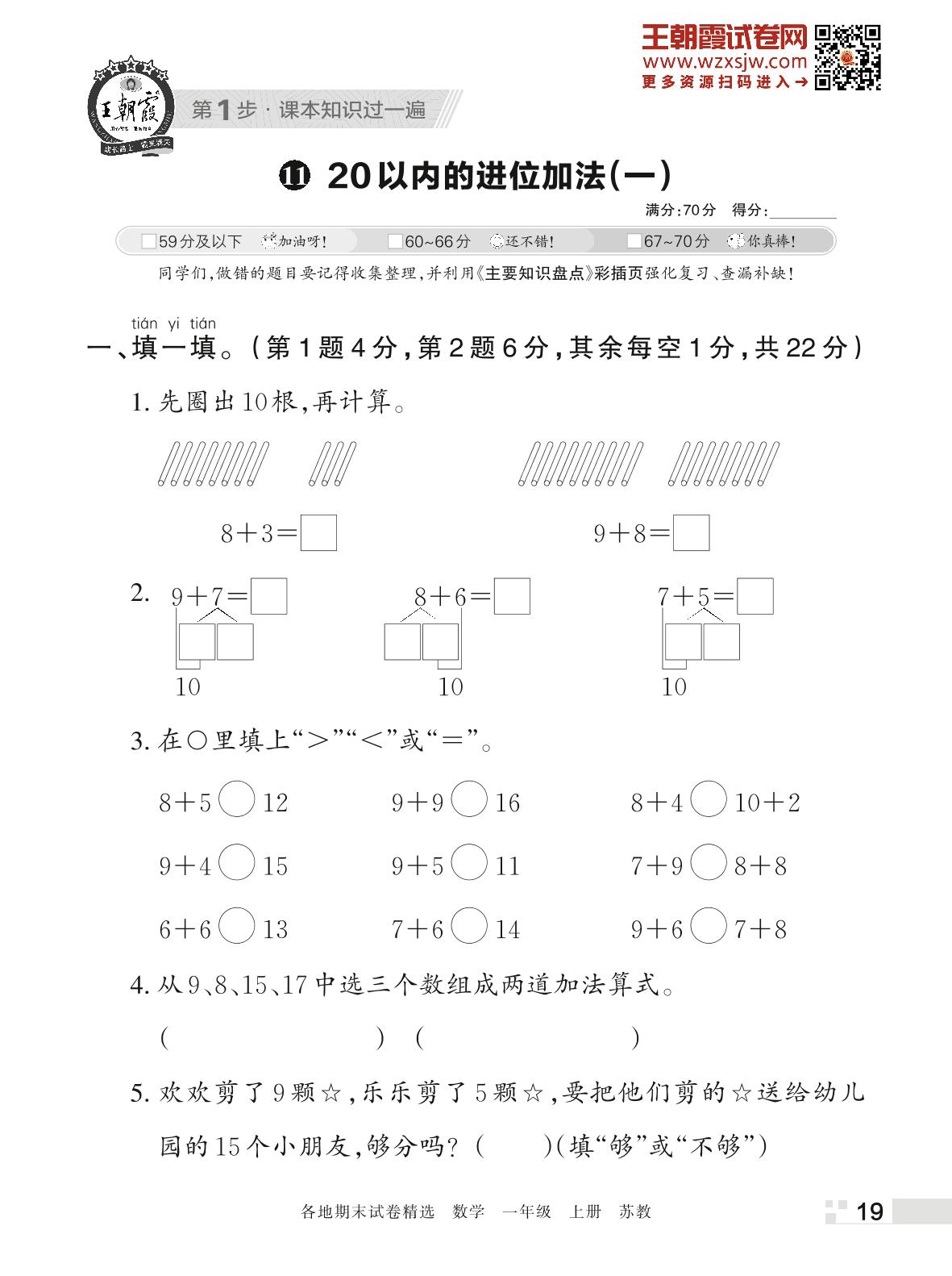王朝霞期末过课本——11 20以内的进位加法(一)一年级上册数学(苏教版)