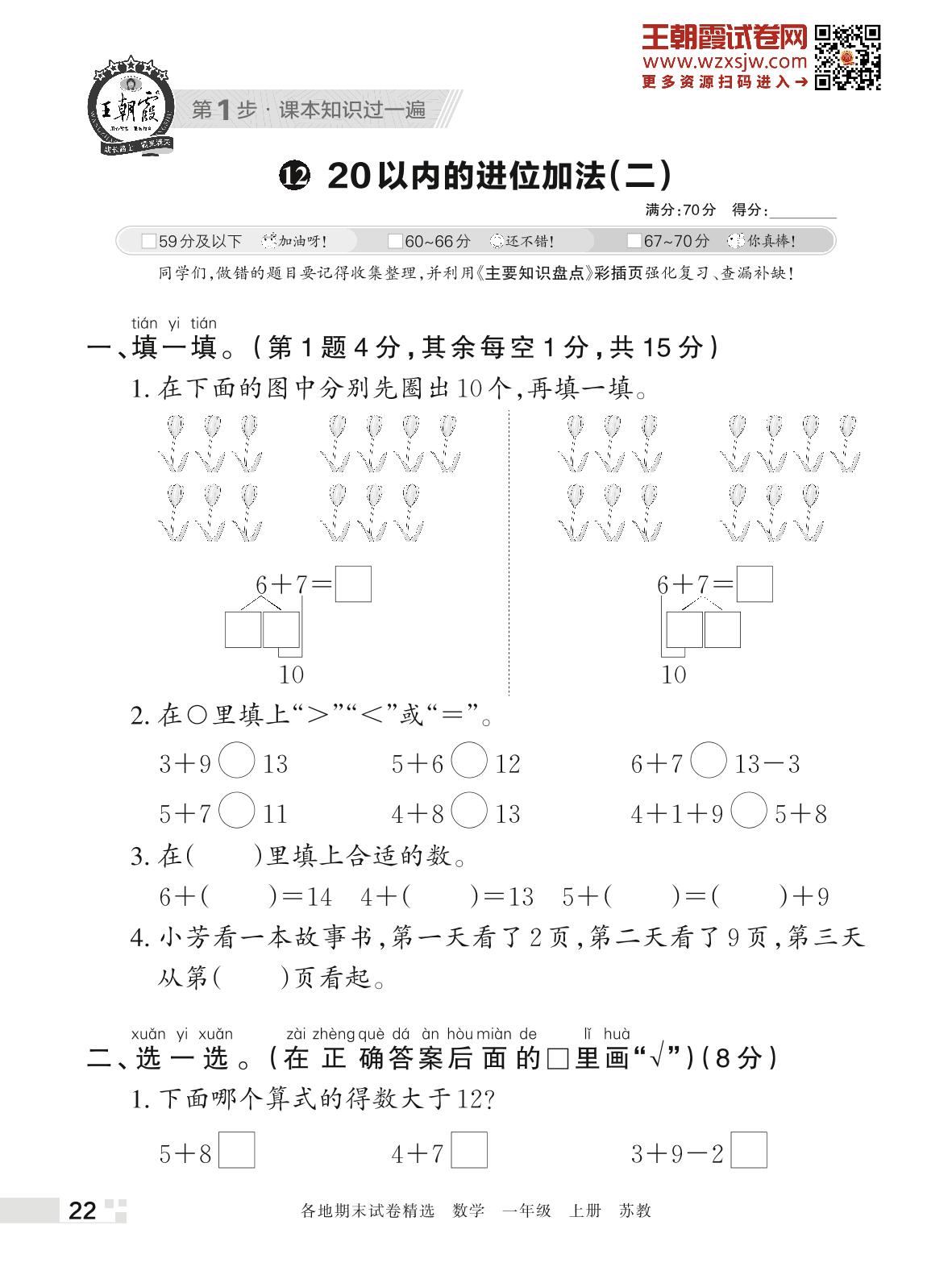 王朝霞期末过课本——12 20以内的进位加法(二)一年级上册数学(苏教版)