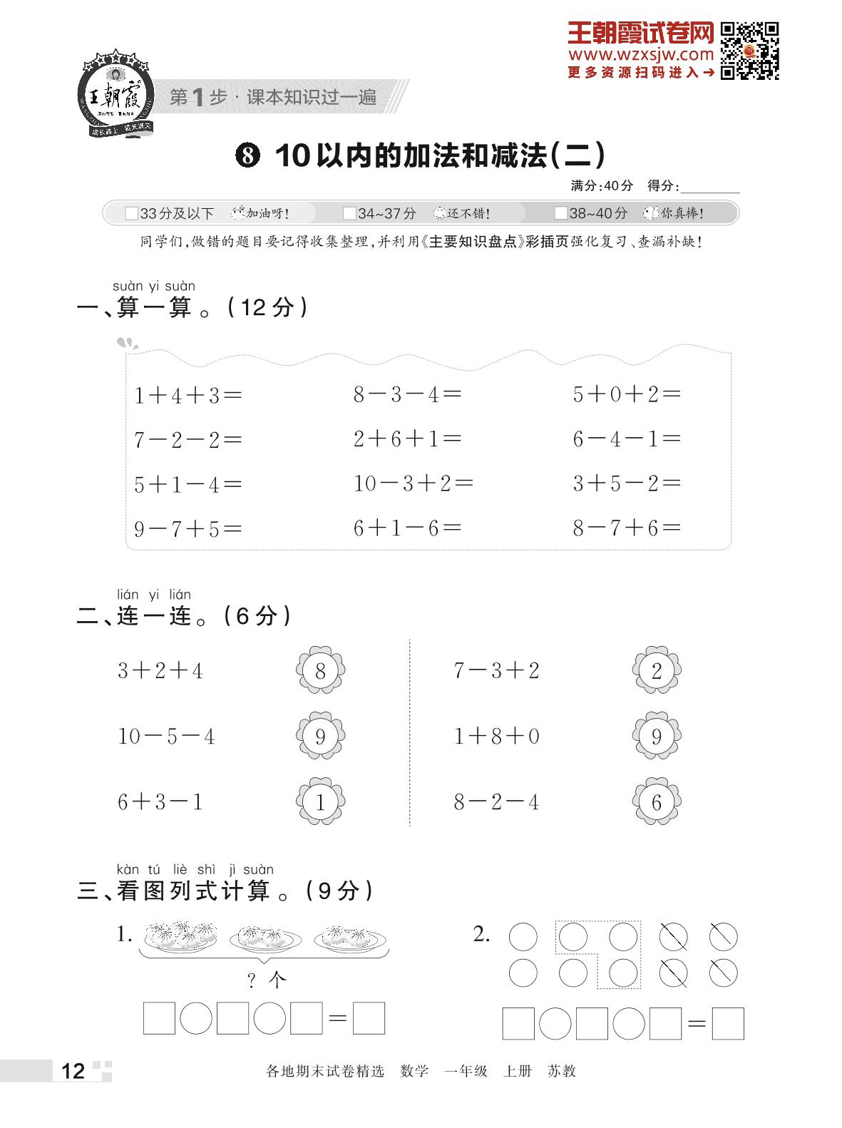 王朝霞期末过课本——8 10以内的加法和减法(二)一年级上册数学(苏教版)