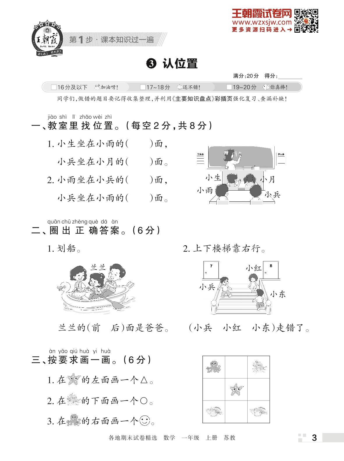 王朝霞期末过课本——3 认位置一年级上册数学(苏教版)