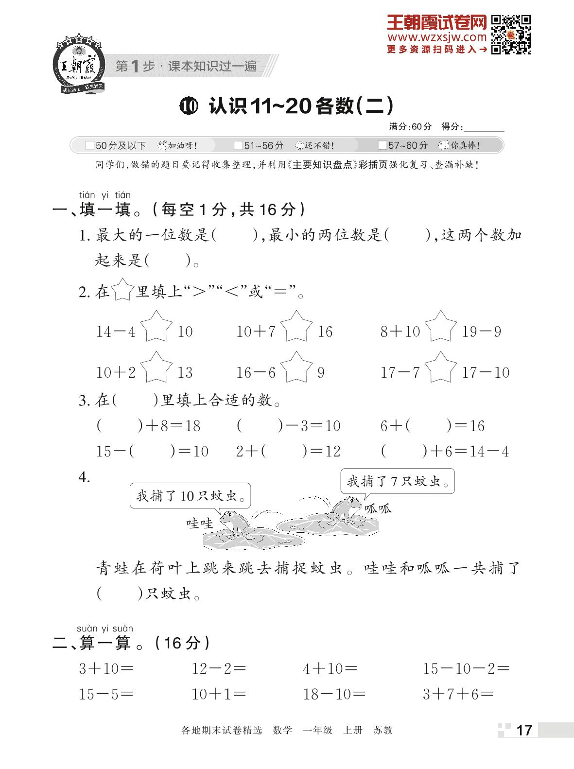 王朝霞期末过课本——10 认识11~20各数(二)一年级上册数学(苏教版)
