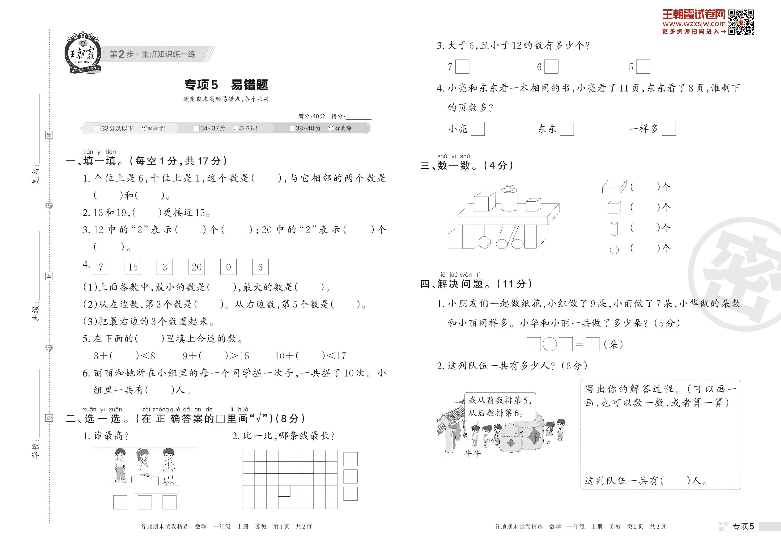王朝霞期末专项卷——易错题一年级上册数学(苏教版)【5】