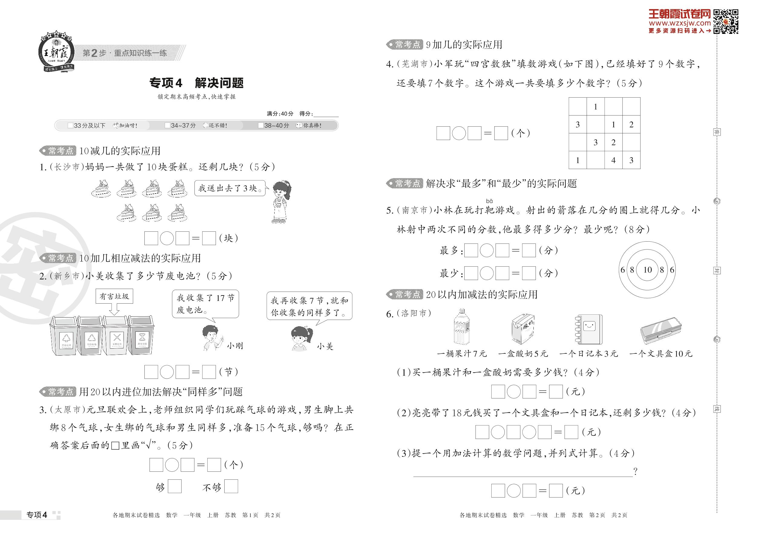 王朝霞期末专项卷——解决问题一年级上册数学(苏教版)【4】