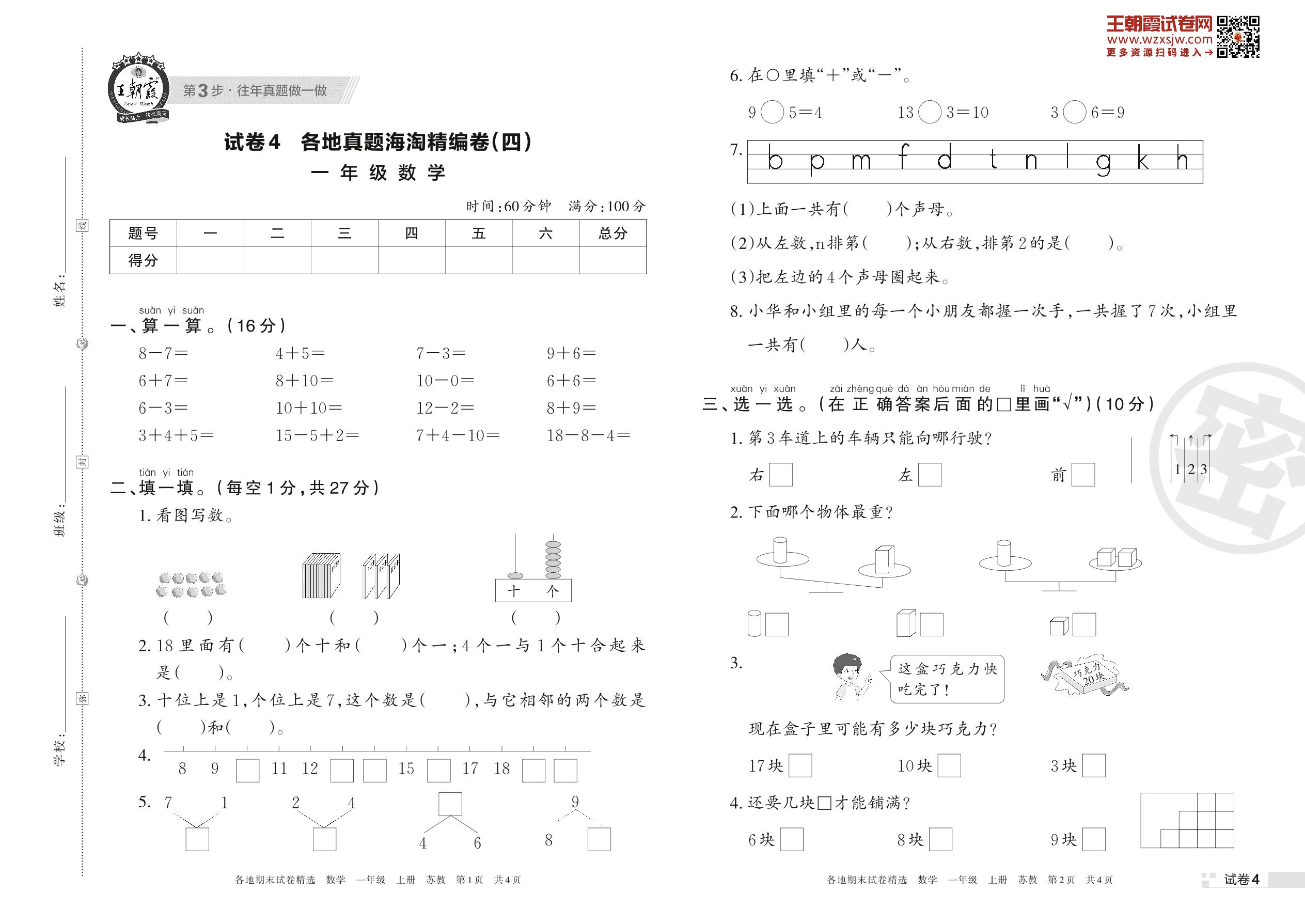各地真题海淘精编卷(四)一年级上册数学(苏教版)【4】