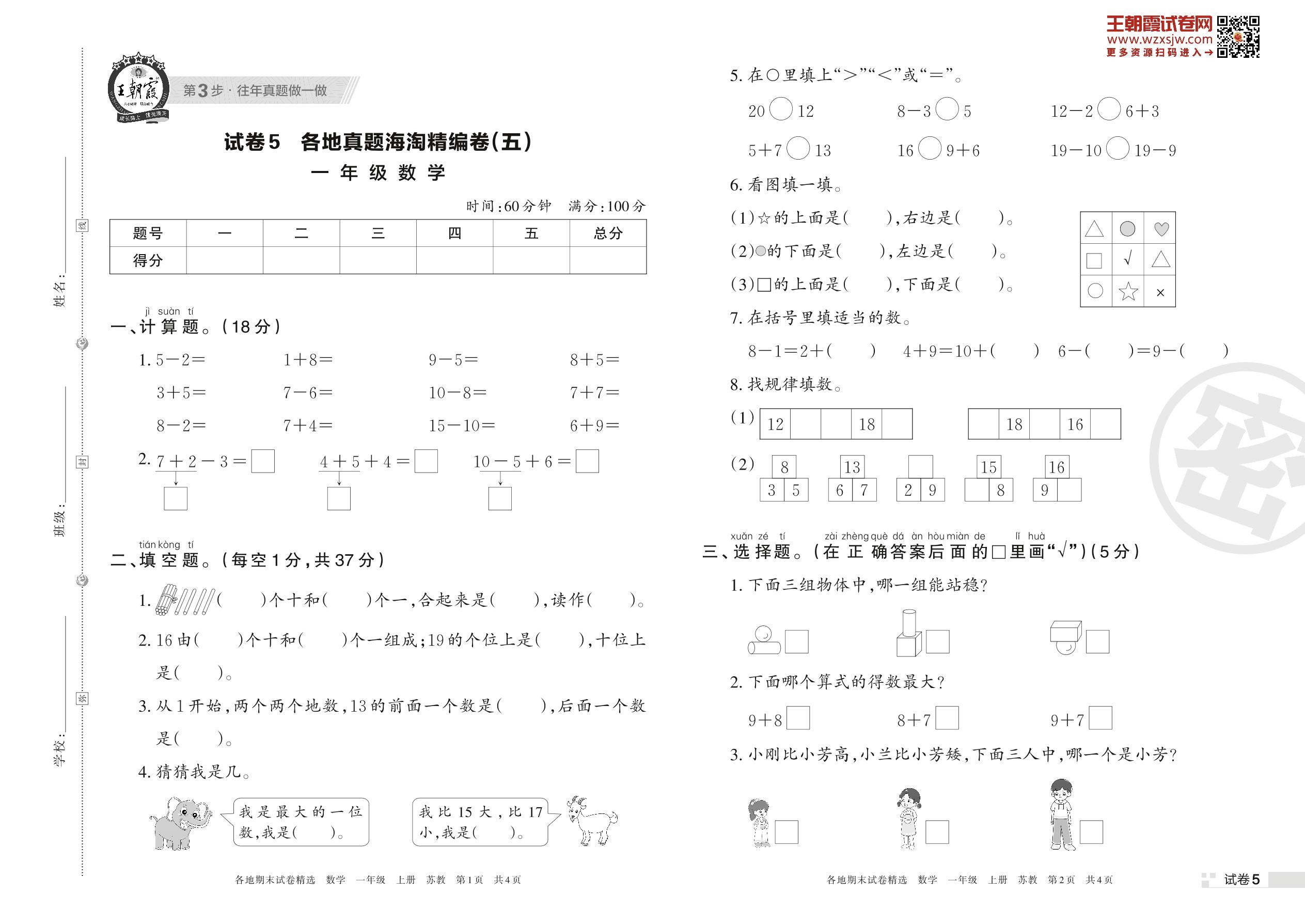 各地真题海淘精编卷(五)一年级上册数学(苏教版)【5】